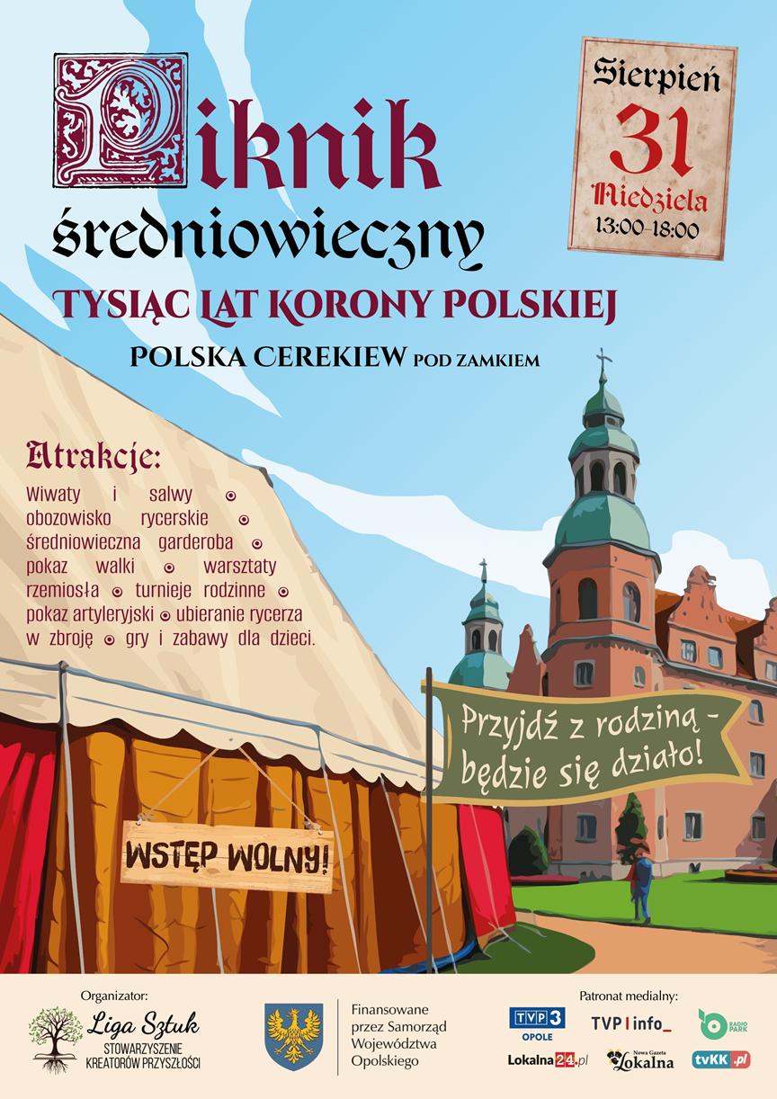 Piknik w Polskiej Cerekwi to wydarzenie bezpłatne, o charakterze międzypokoleniowym, dzięki czemu każdy – dzieci, młodzież i dorośli – znajdzie tu coś dla siebie. To nie tylko świetna forma spędzenia wolnego czasu, ale także żywa lekcja historii, która pozwoli lepiej poznać początki polskiej państwowości i kulturę średniowiecza. Organizatorem wydarzenia jest Stowarzyszenie Kreatorzy Przyszłości – Liga Sztuk przy wsparciu Samorządu Województwa Opolskiego.