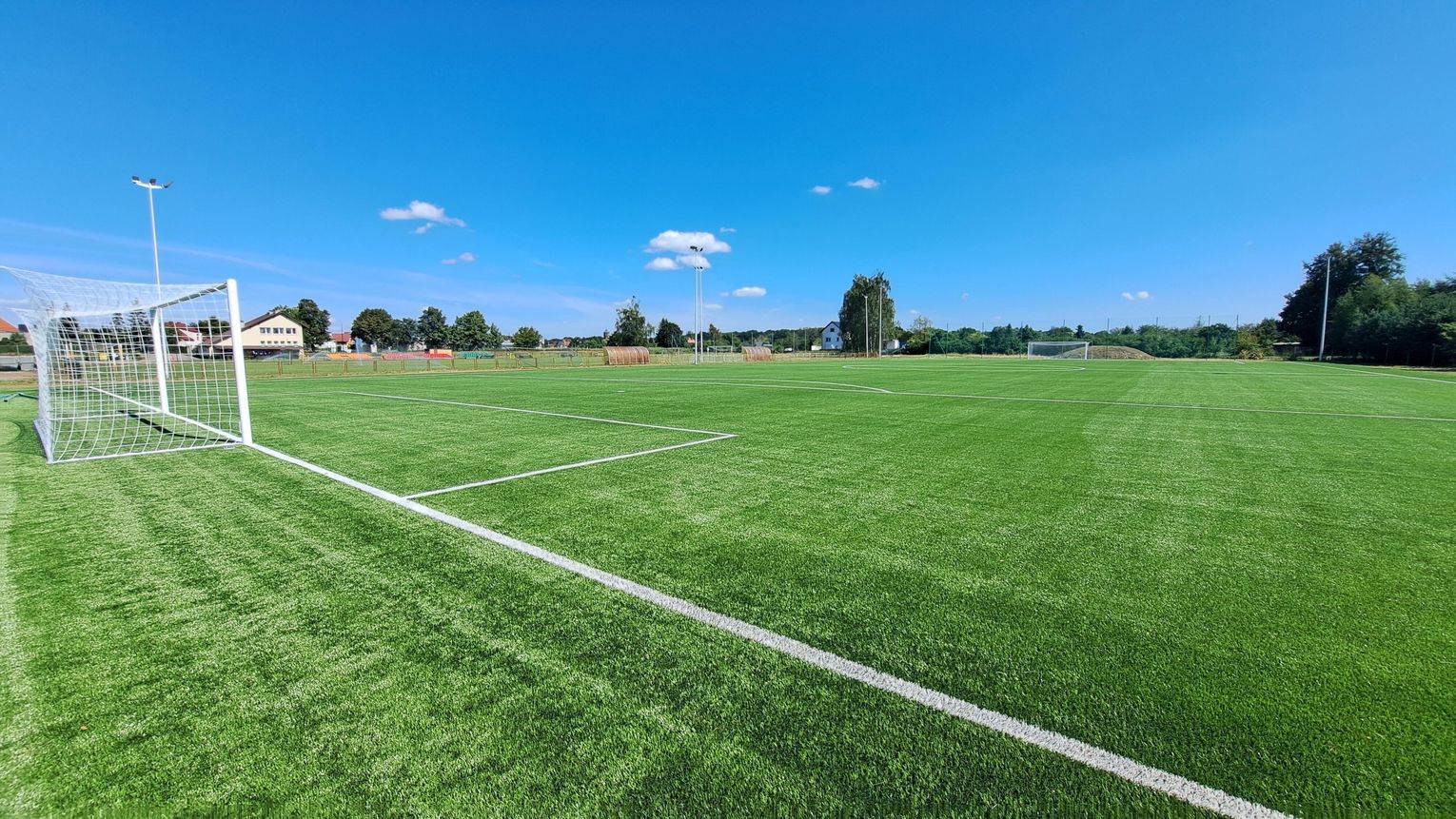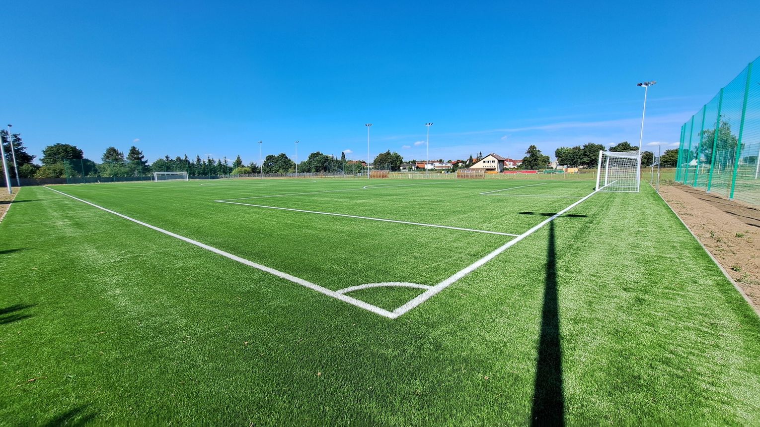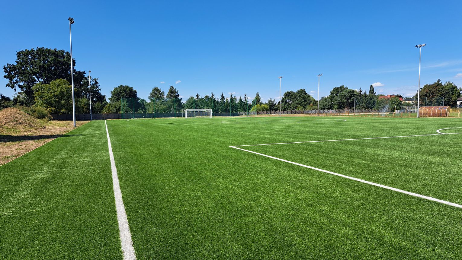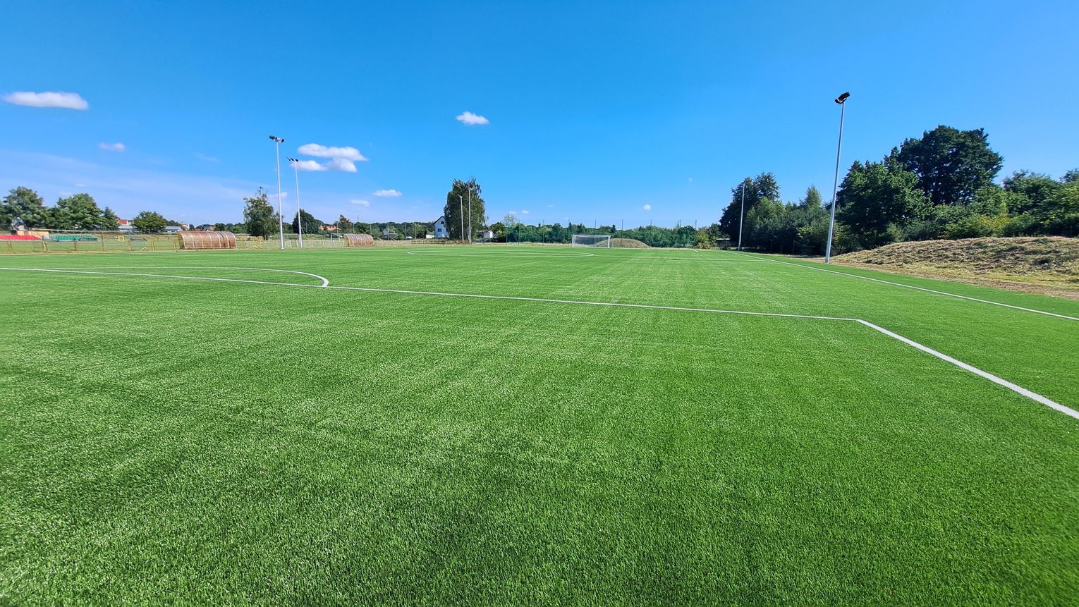 Zgodnie z projektem w ramach inwestycji powstało boisko do piłki nożnej o nawierzchni z syntetycznej trawy z warstwami podbudowy i powierzchni 5630,9 mkw. (101 m x 56 m) i polu gry 95 m x 52 m. Boisko zostało wyposażone w dwie bramki aluminiowe o wymiarach 7,32 x 2,44 m.