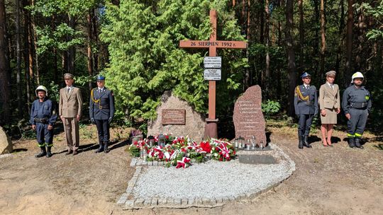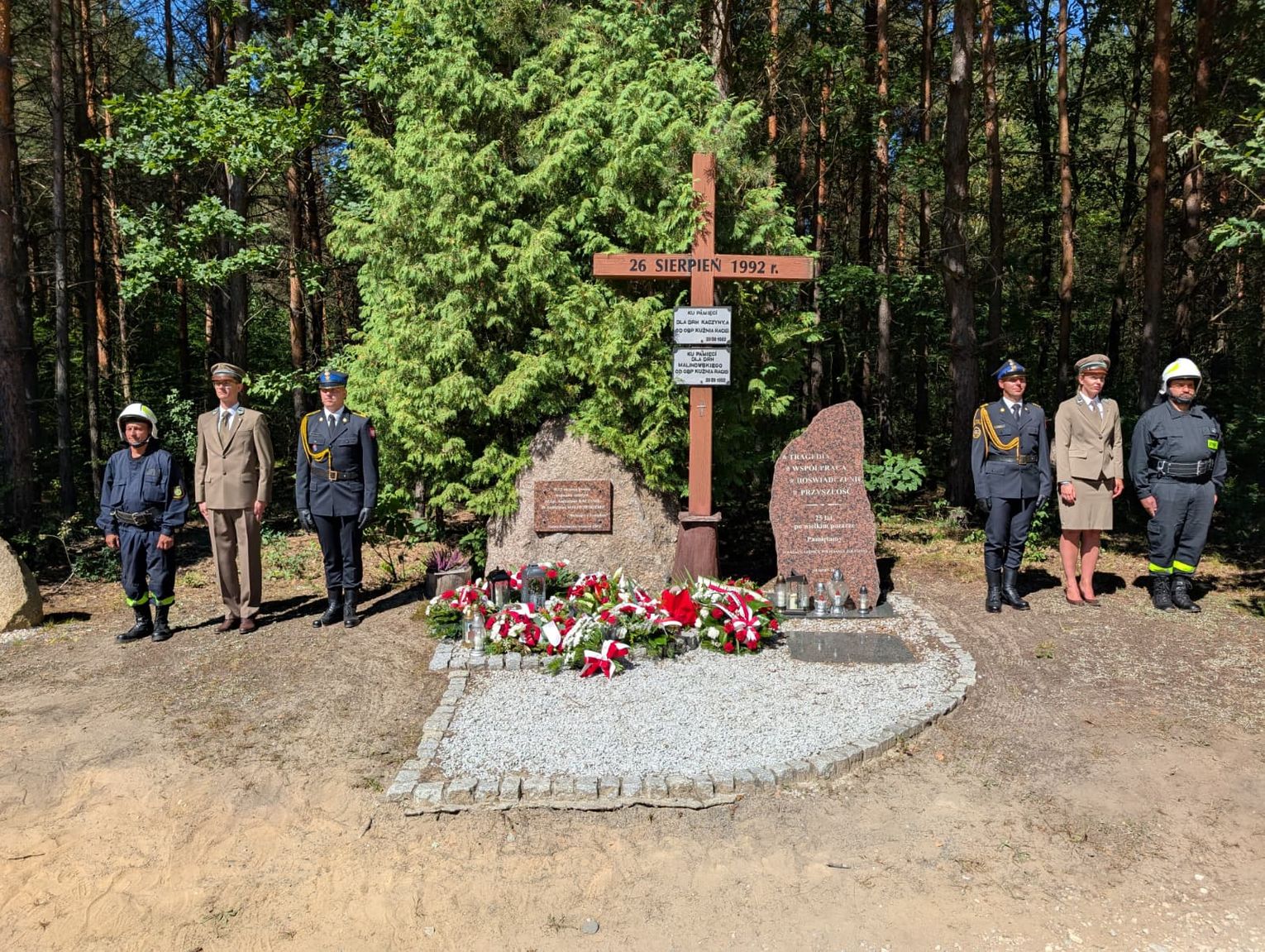 Przedstawiciele władz rządowych, samorządowych, strażacy i leśnicy spotkali się w miejscu tragicznej śmierci mł. kpt. Andrzeja Kaczyny i dh. Andrzeja Malinowskiego, aby oddać cześć poległym podczas walki z żywiołem.