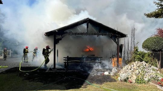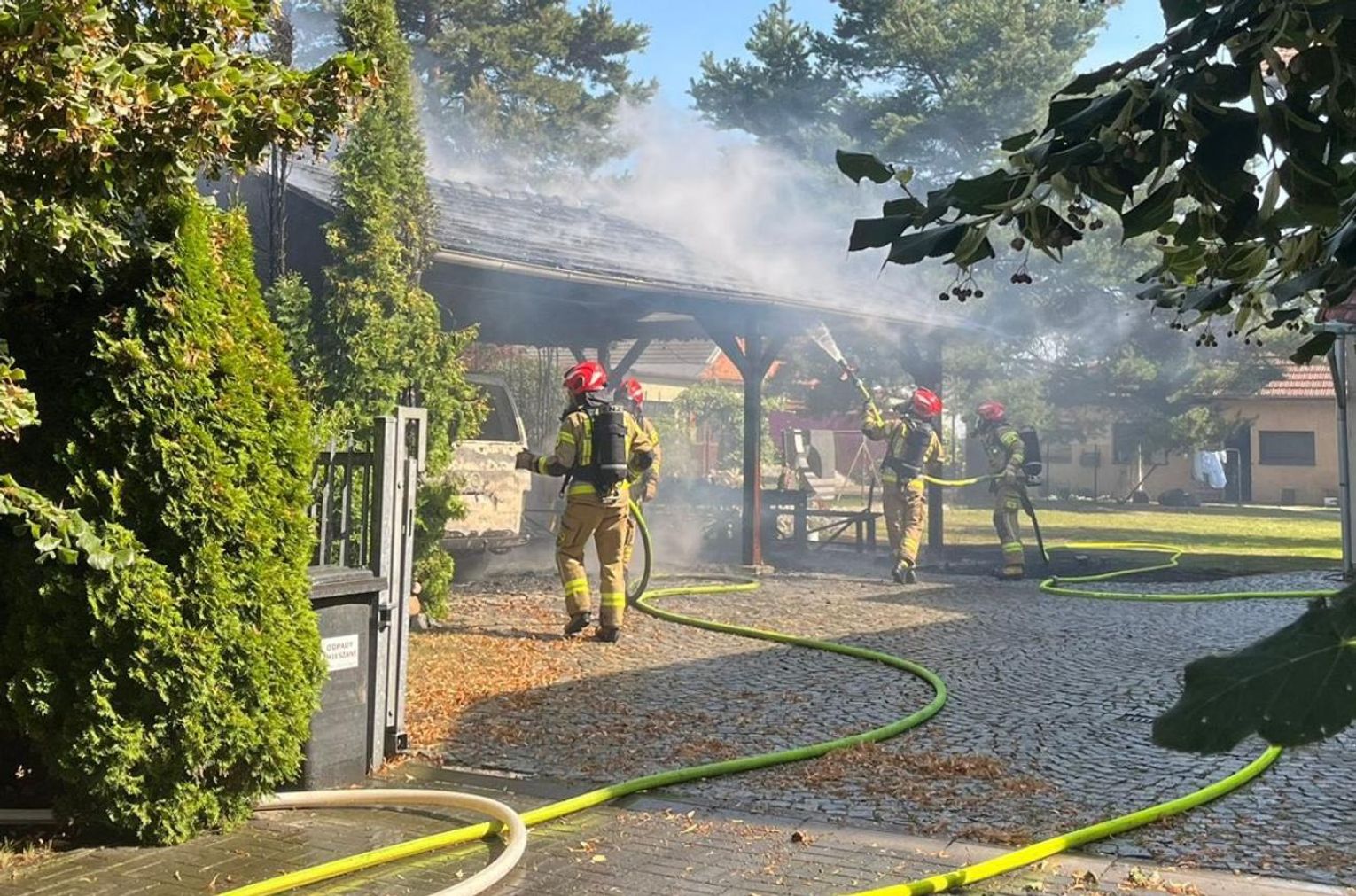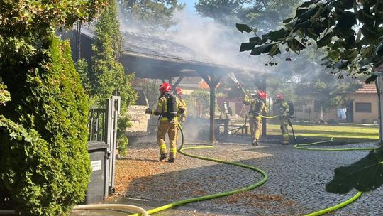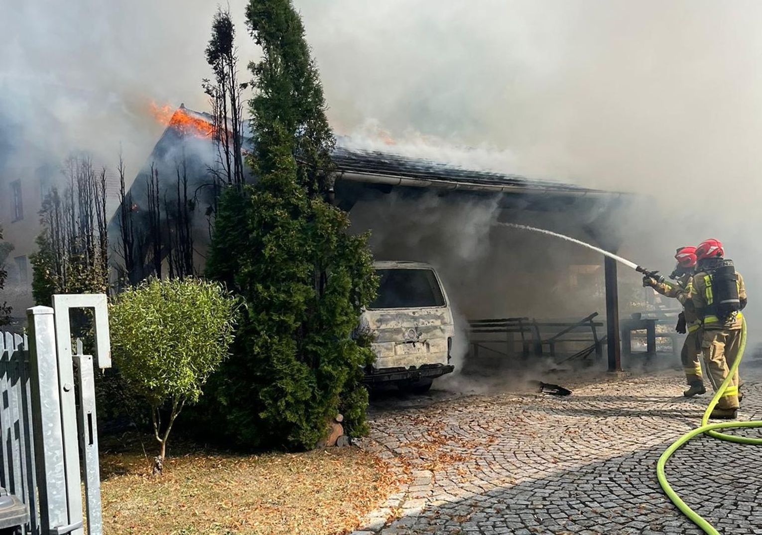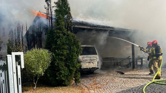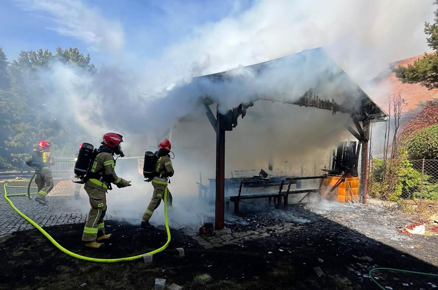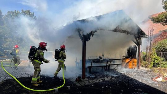 - Paliła się wolnostojąca wiata drewniana o wymiarach około 10 na 5 metrów. Dach kryty był dachówką, a pod nim stał bus. Kiedy strażacy przybyli na miejsce, wszystko było już w ogniu - relacjonuje st. sekc. Piotr Parma, dyżurny stanowiska kierowania komendanta powiatowego PSP w Kędzierzynie-Koźlu.