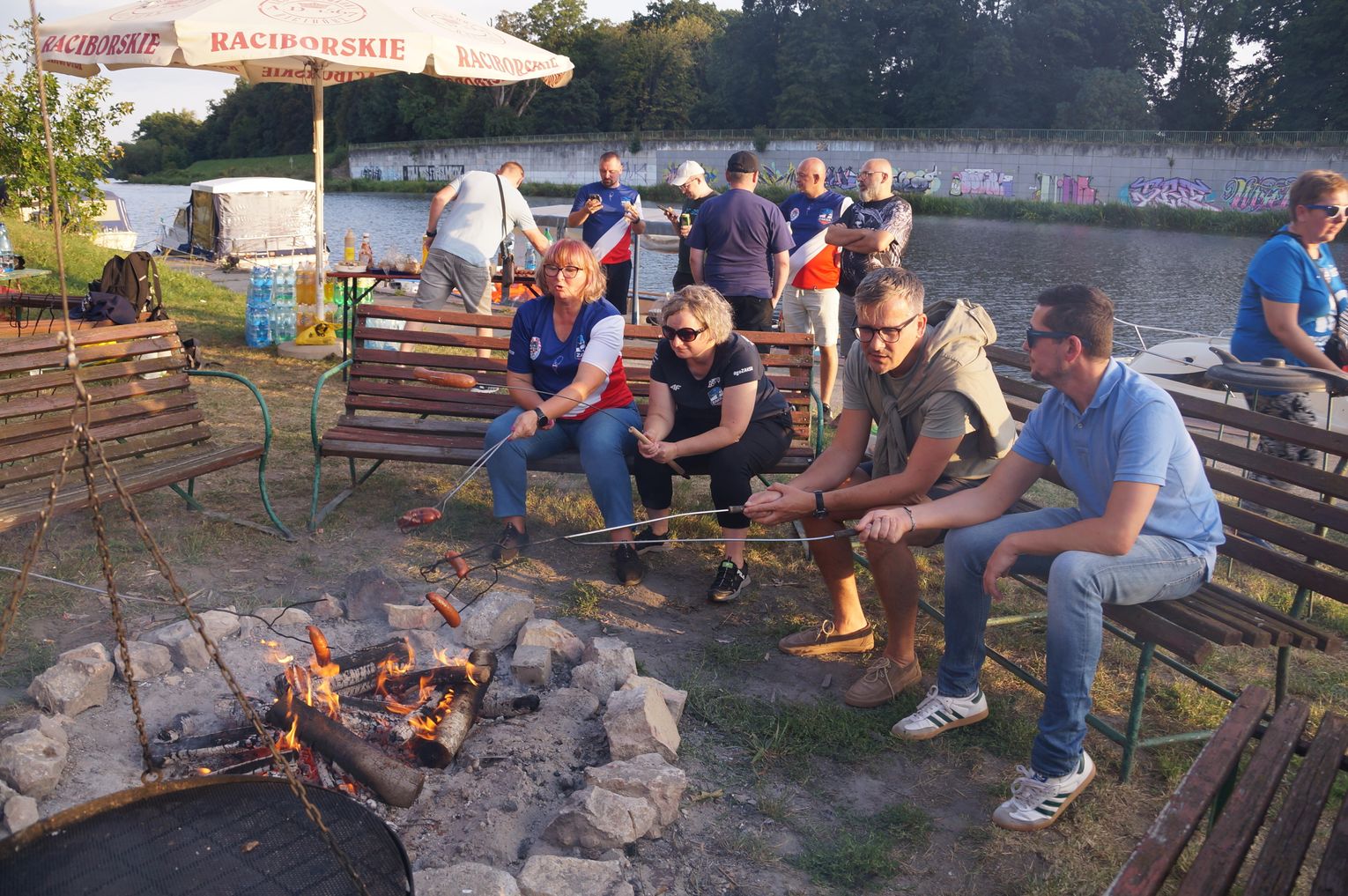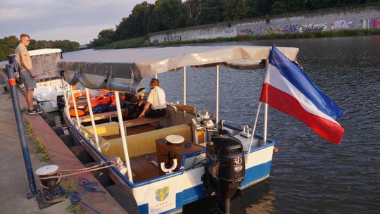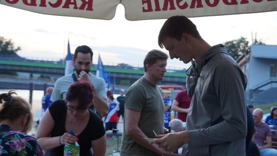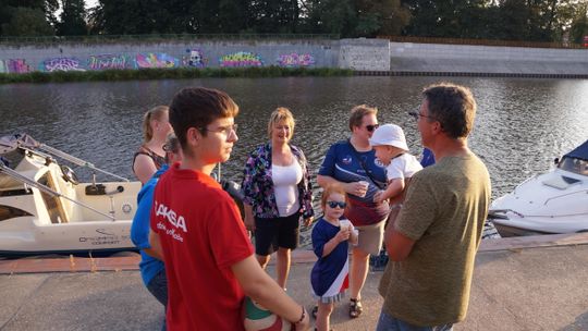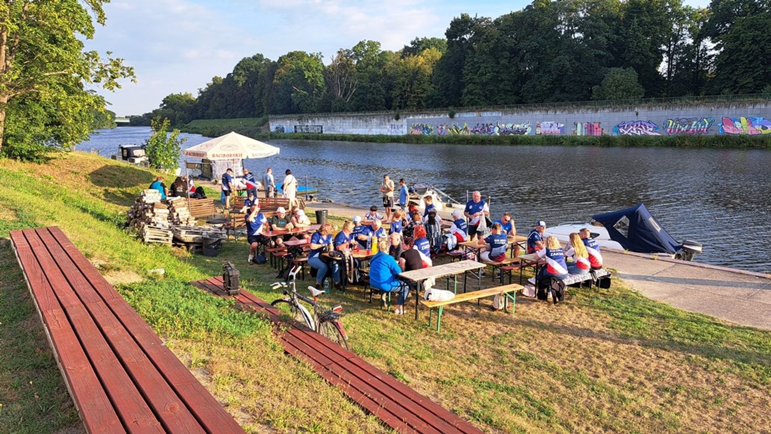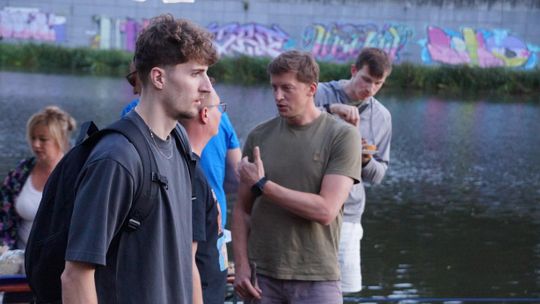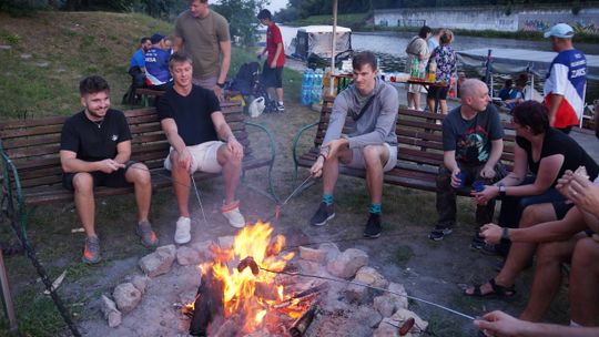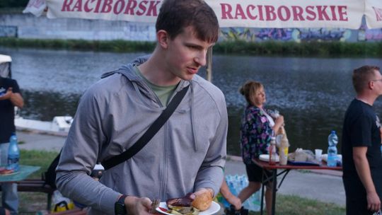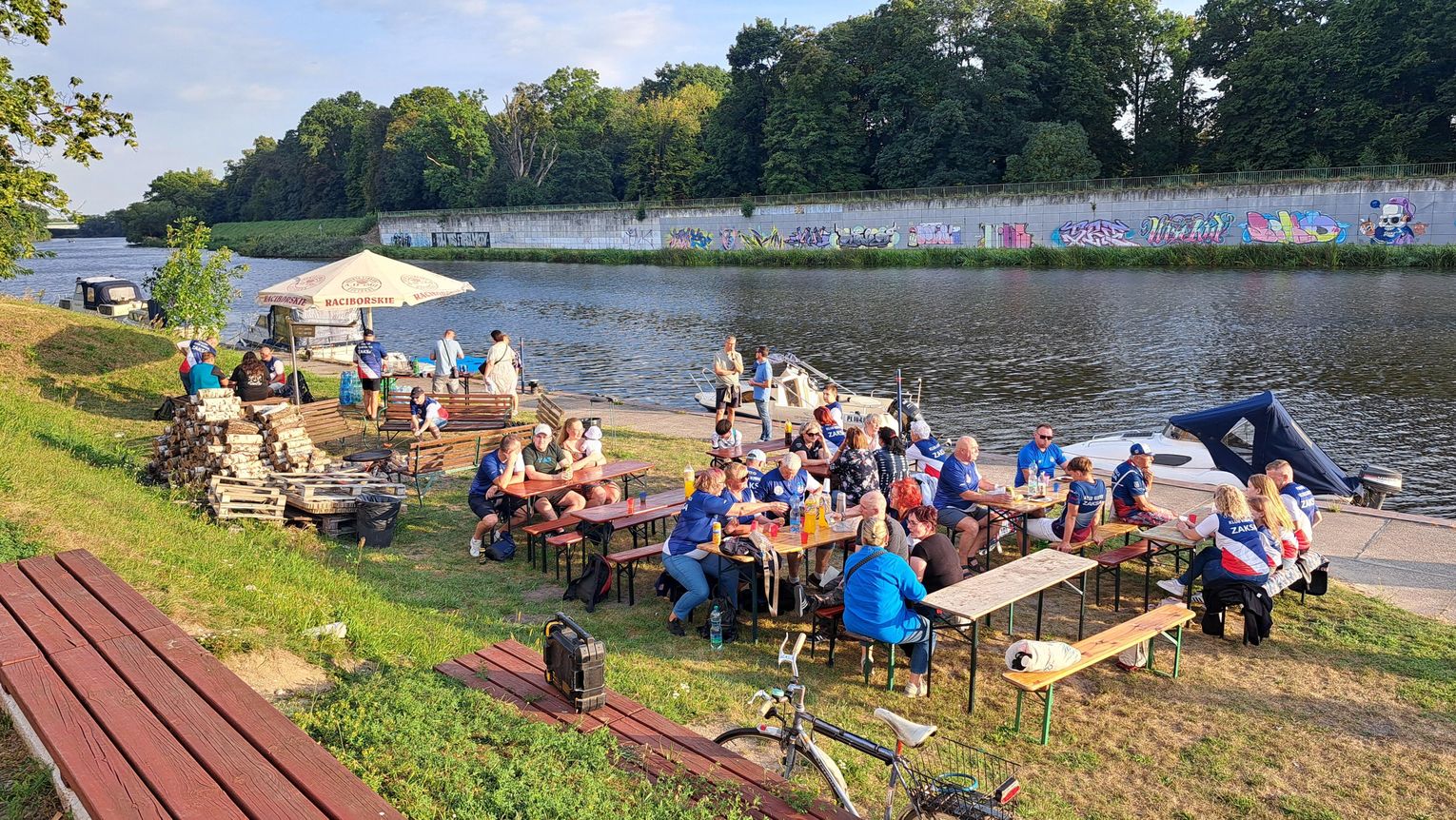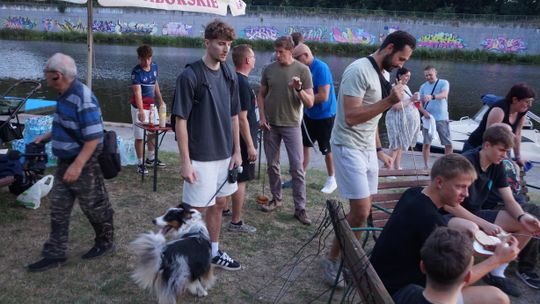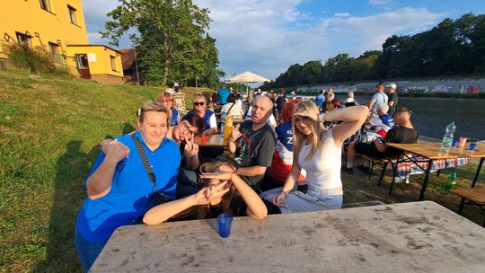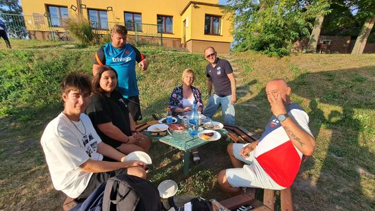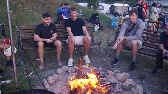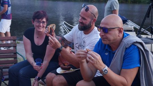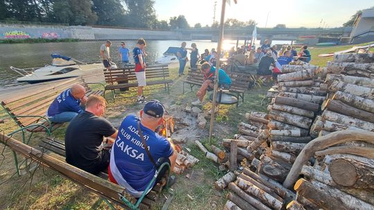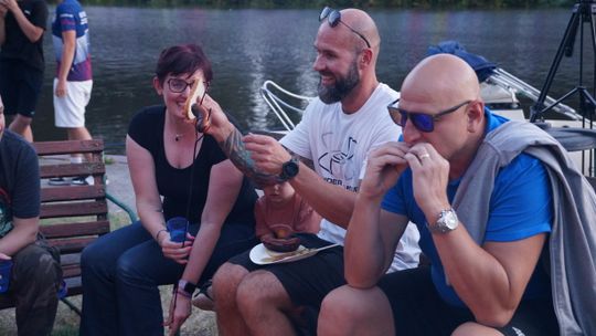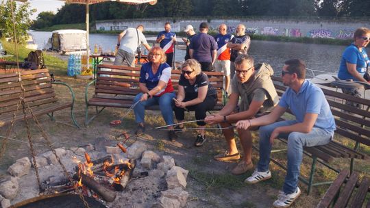 Jedną z atrakcji spotkania były przejażdżki łodzią po Odrze. Oczywiście nie mogło przy tej okazji zabraknąć kiełbasek, które każdy mógł sobie upiec przy ognisku.