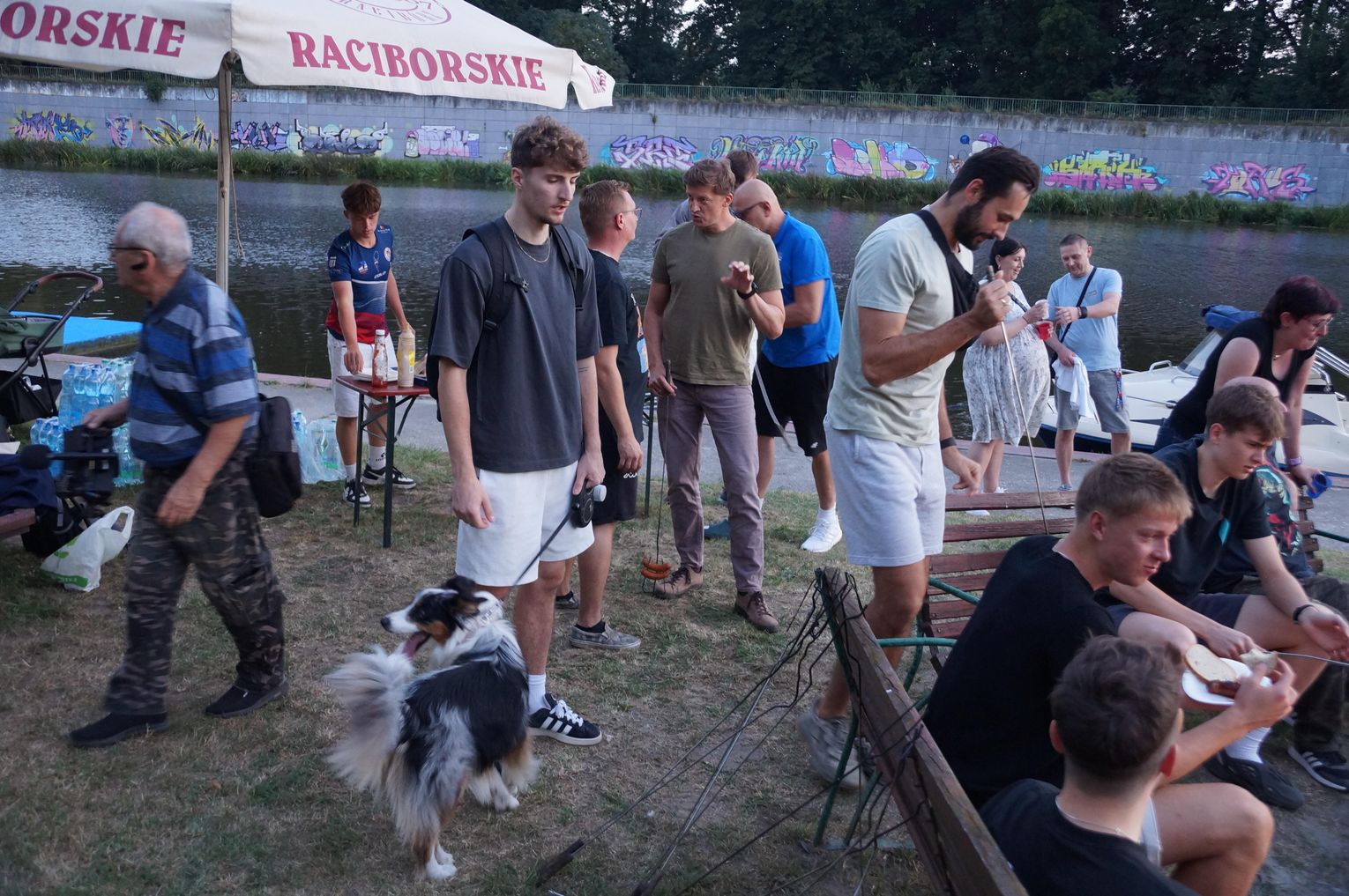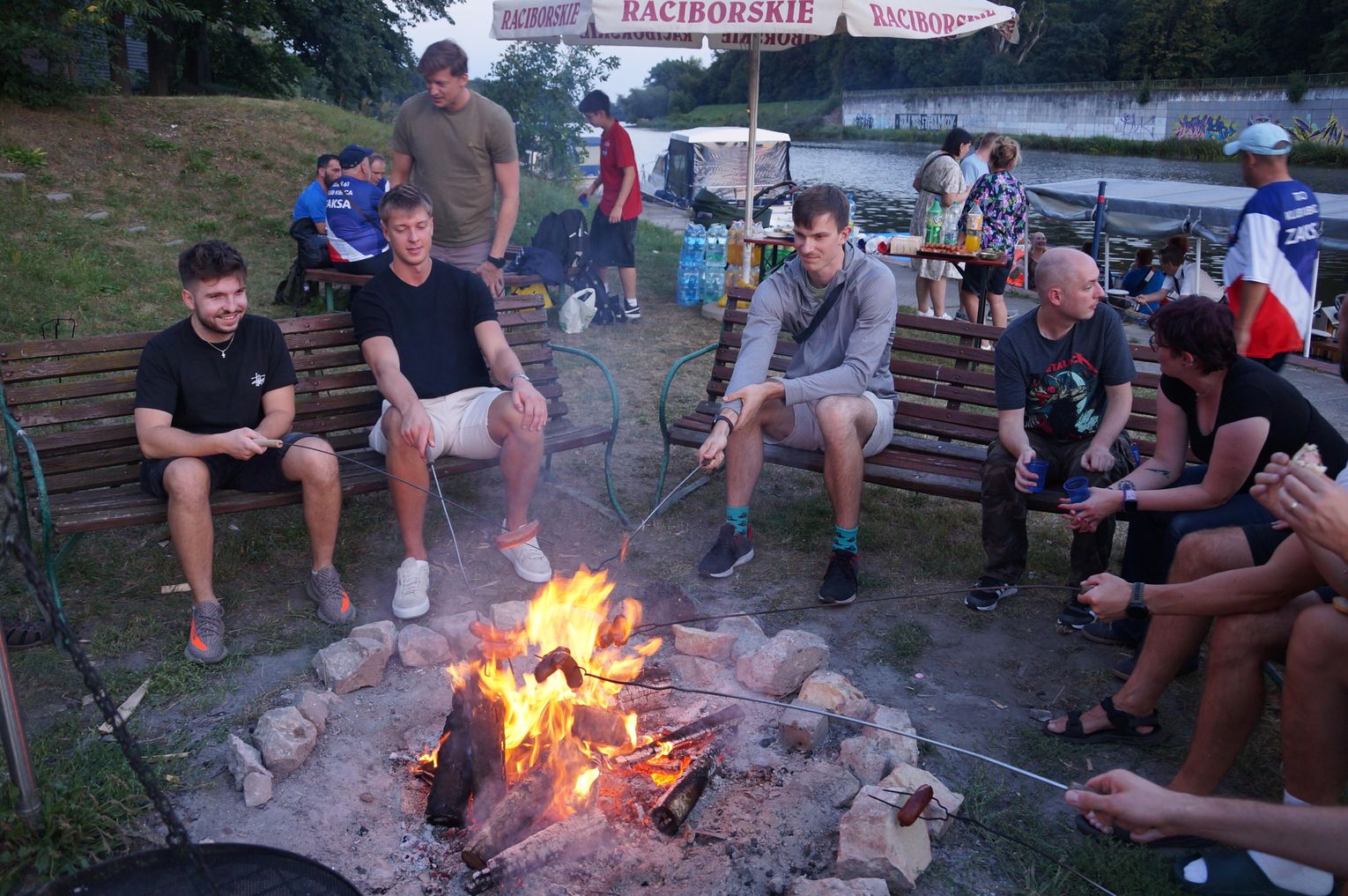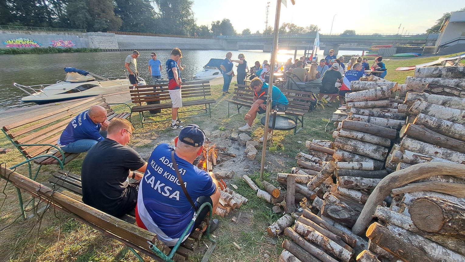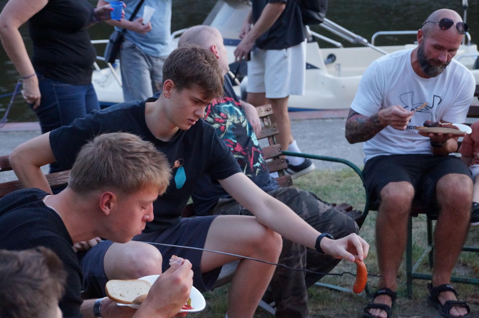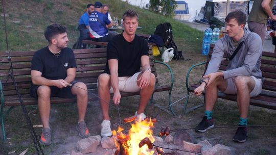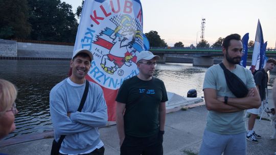 Jedną z atrakcji spotkania były przejażdżki łodzią po Odrze. Oczywiście nie mogło przy tej okazji zabraknąć kiełbasek, które każdy mógł sobie upiec przy ognisku.