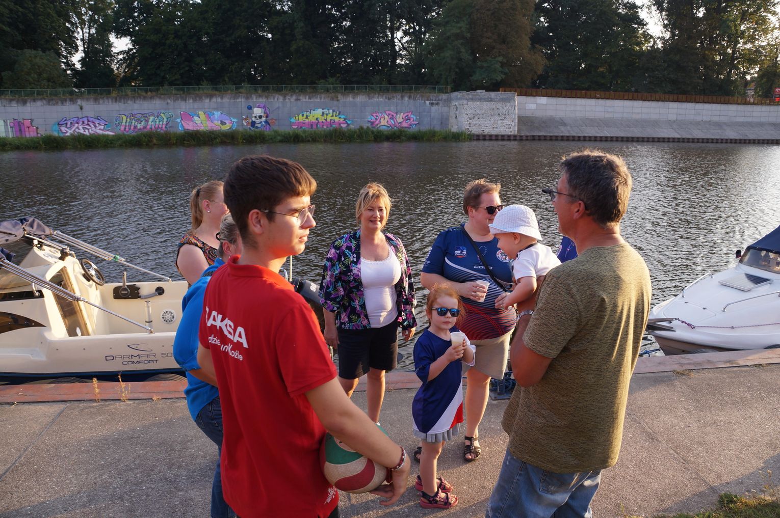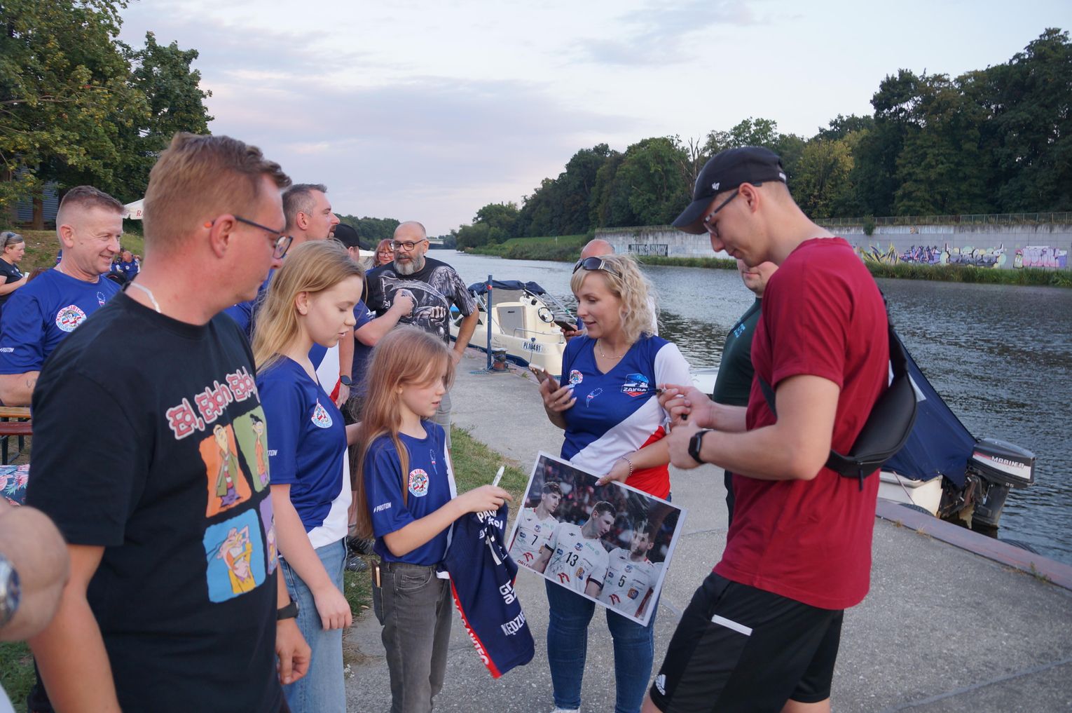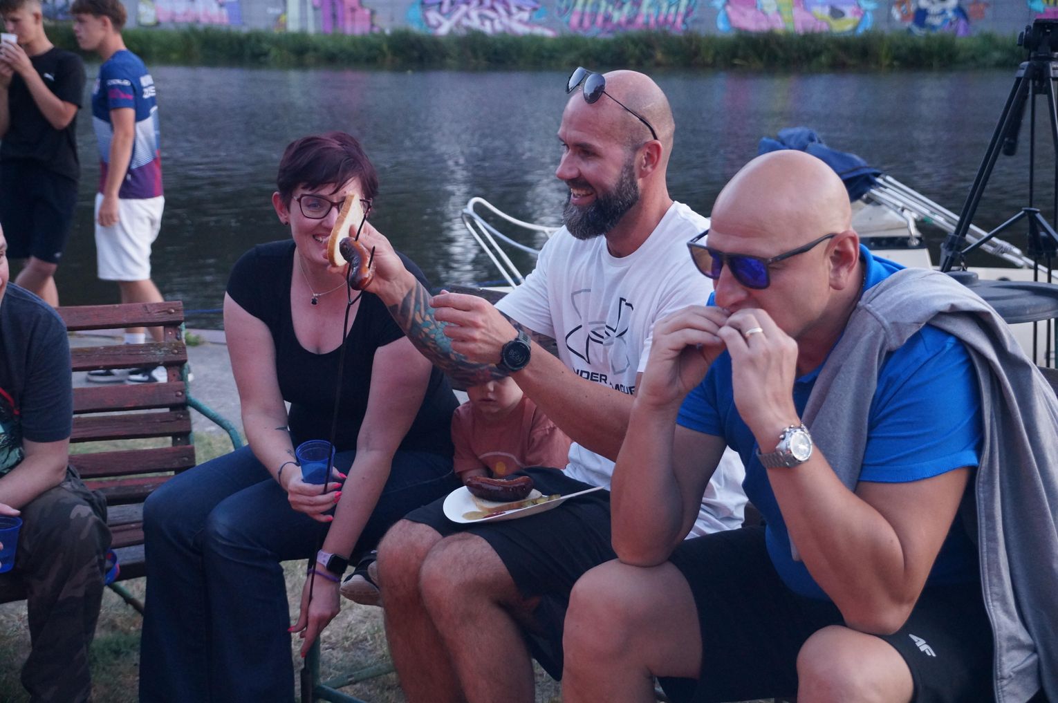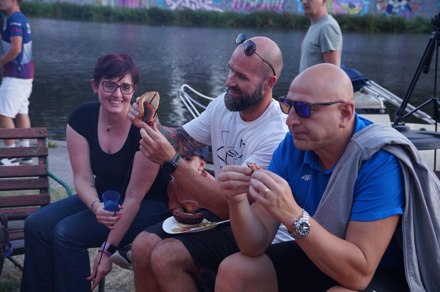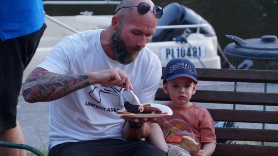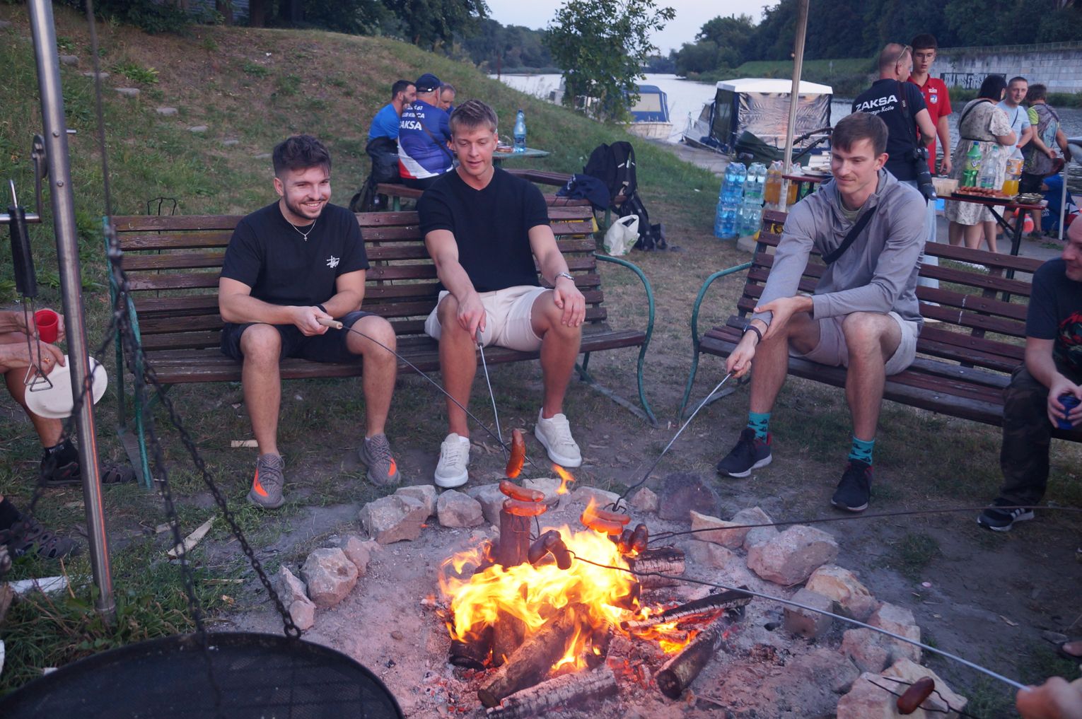 Jedną z atrakcji spotkania były przejażdżki łodzią po Odrze. Oczywiście nie mogło przy tej okazji zabraknąć kiełbasek, które każdy mógł sobie upiec przy ognisku.