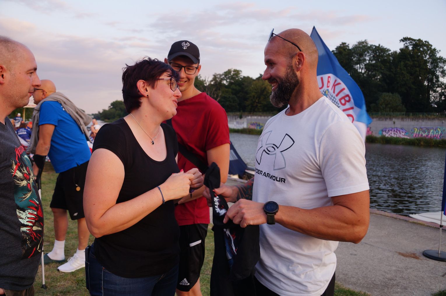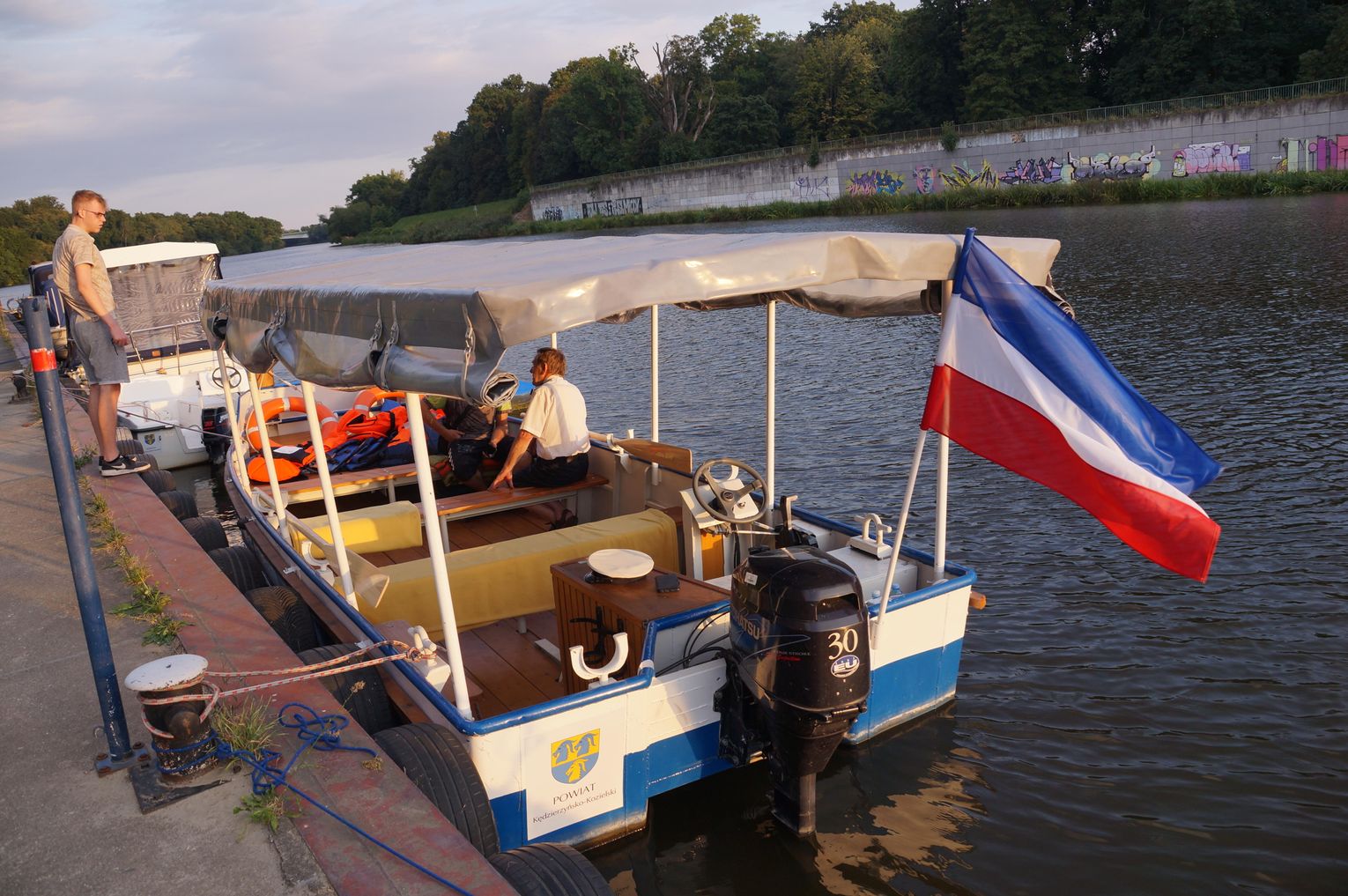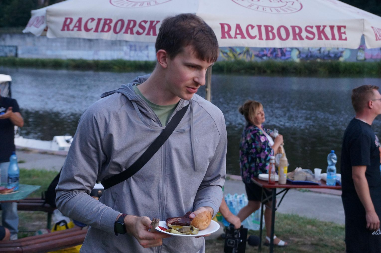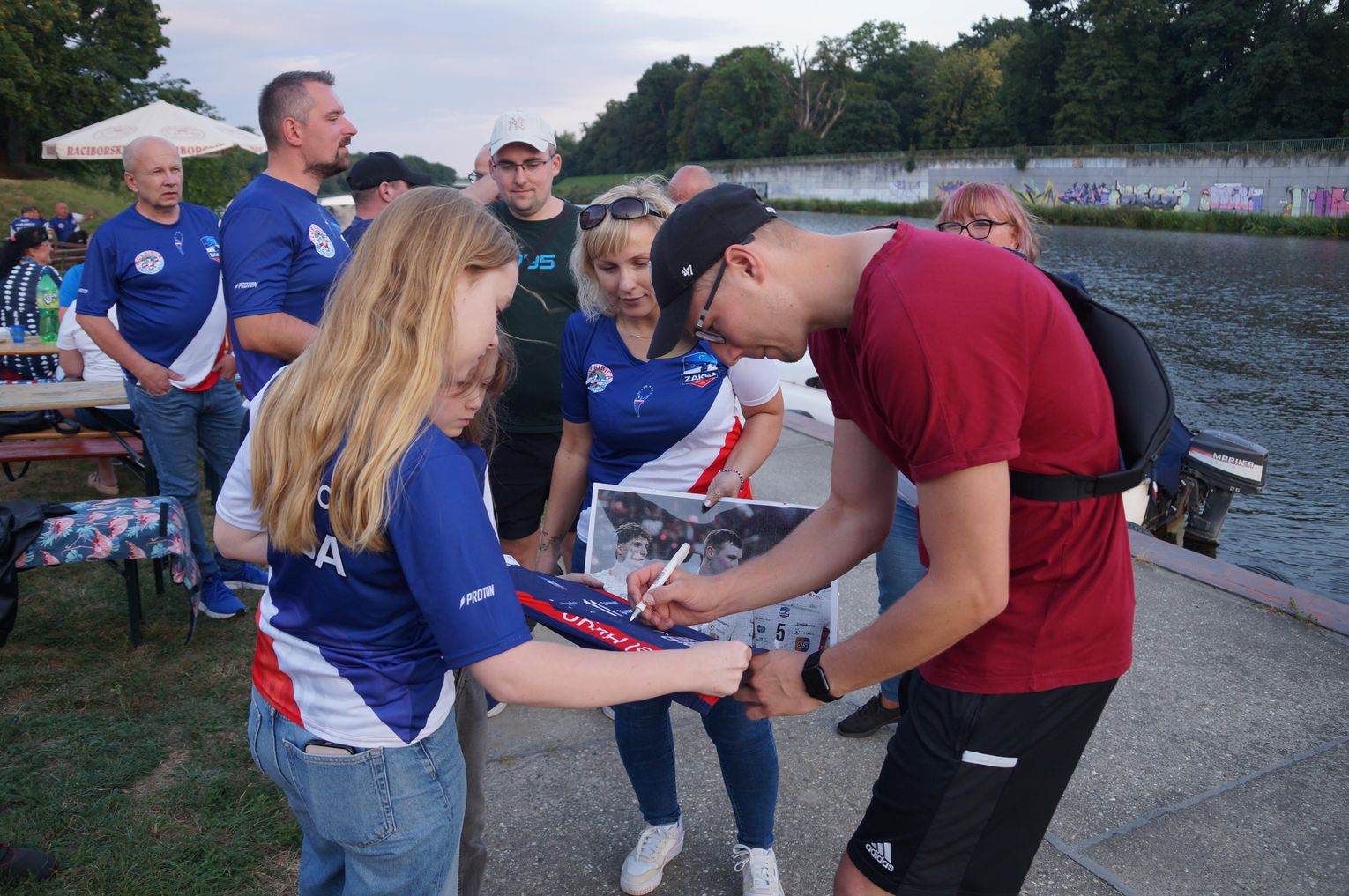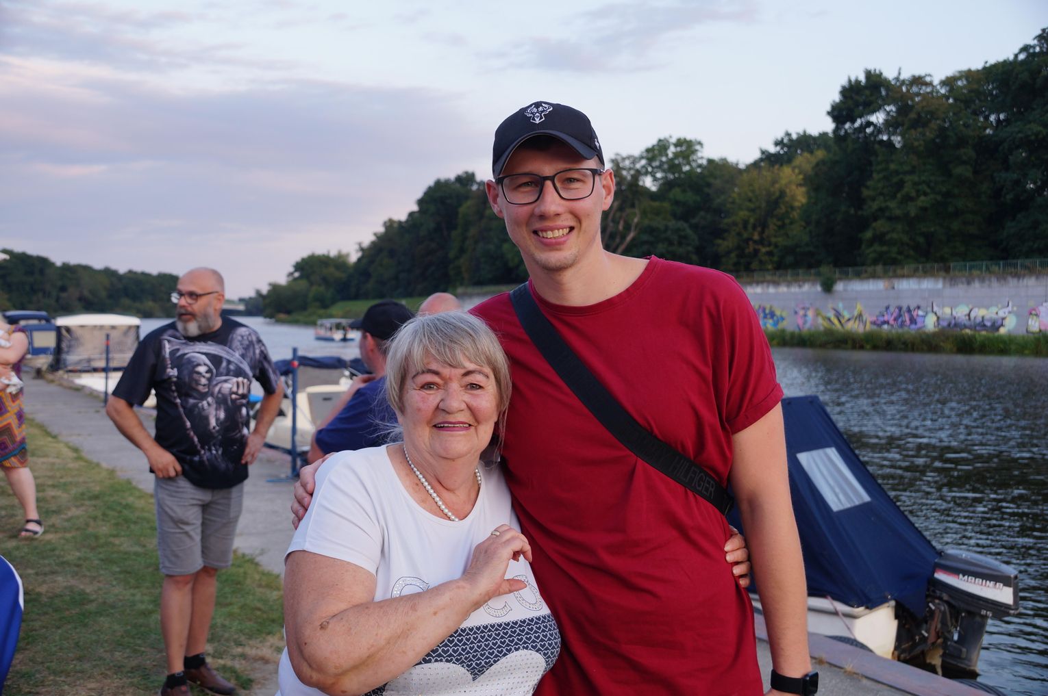 Jedną z atrakcji spotkania były przejażdżki łodzią po Odrze. Oczywiście nie mogło przy tej okazji zabraknąć kiełbasek, które każdy mógł sobie upiec przy ognisku.