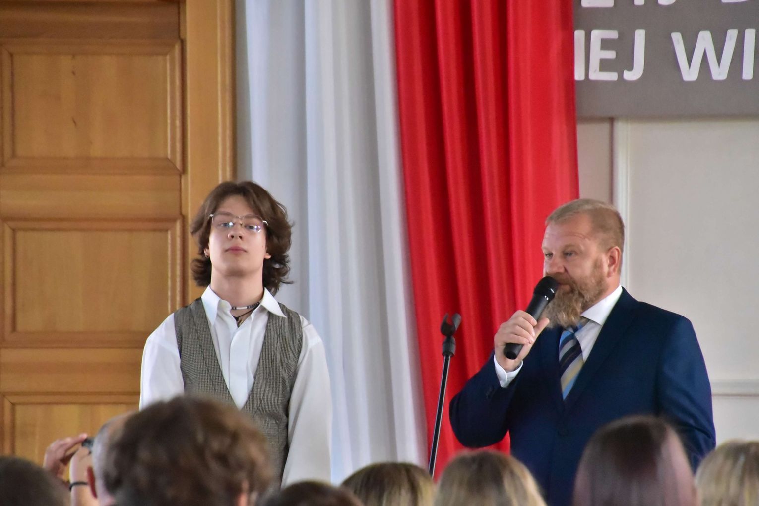 Składając życzenia całej społeczności szkolnej naszego powiatu, starosta podkreślił znaczenie wytrwałości i konsekwencji w zdobywaniu wiedzy oraz rolę dobrych relacji między uczniami i pedagogami.