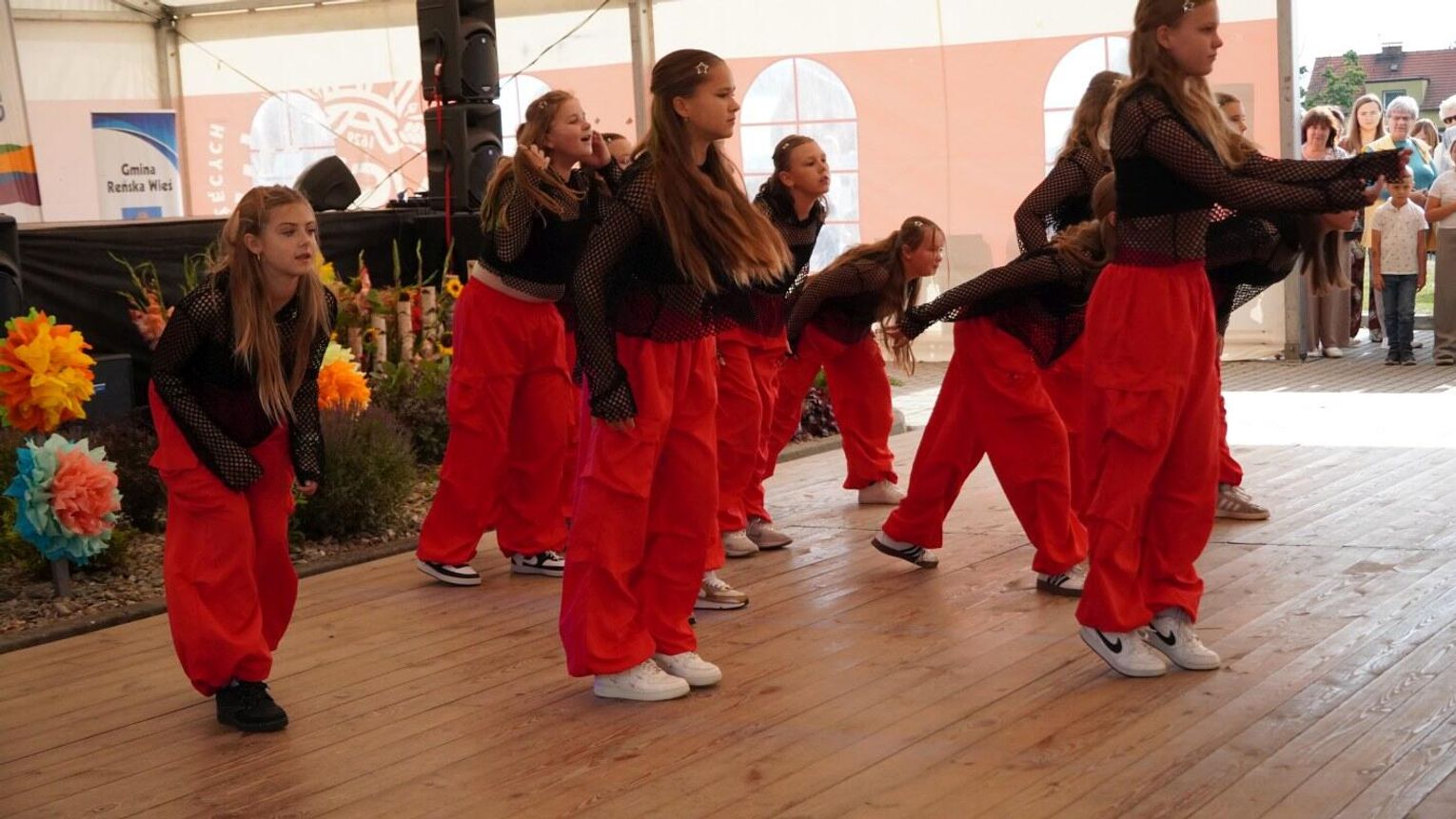 Niedzielne uroczystości miały bardziej tradycyjny charakter. O godzinie 11.00 odprawiono Mszę Świętą Dożynkową w kościele parafialnym w Reńskiej Wsi, podczas której dziękowano za tegoroczne plony. Następnie barwny korowód dożynkowy przeszedł na stadion gminny, gdzie odbyła się część artystyczna.
