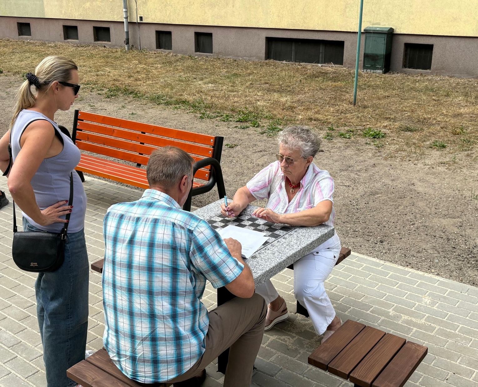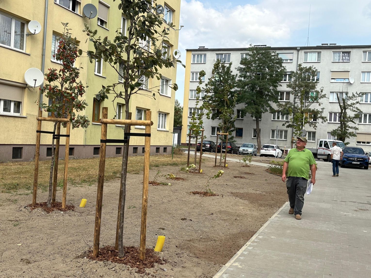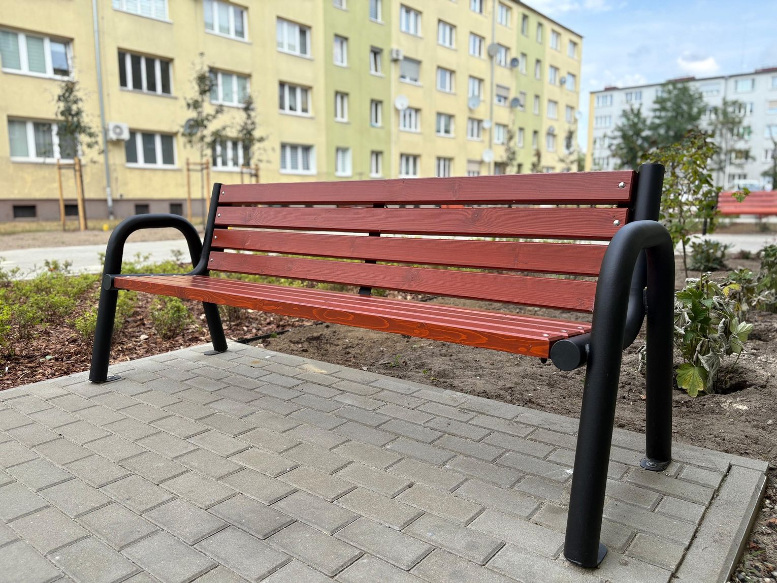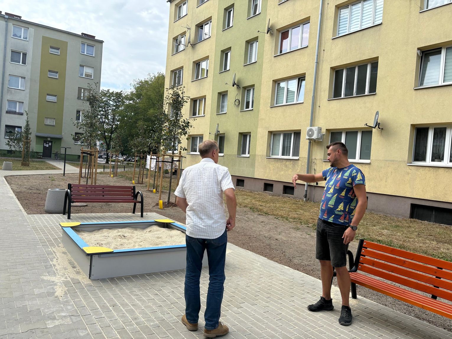 Pojawiły się także nowe nasadzenia zieleni oraz elementy małej architektury. Ławki, kosze na śmieci, stojaki na rowery, piaskownica i stół do gry w szachy tworzą idealne miejsce do odpoczynku, zabawy i sąsiedzkiej integracji.