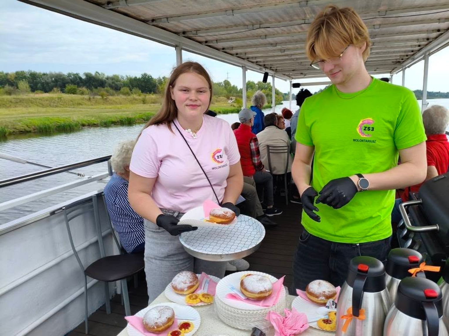Na pokładzie nie zabrakło też muzyki na żywo, słodkich przekąsek i rozmów w radosnej atmosferze. O dobre samopoczucie w trakcie rejsu zadbali wolontariusze z Zespołu Szkół nr 3.