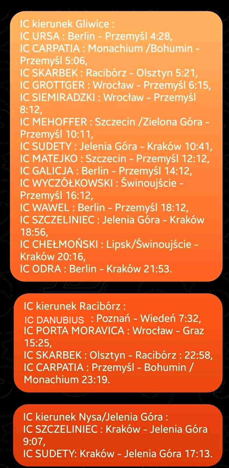 Poniżej wszystkie połączenia dalekobieżne, które obowiązywać będą od grudnia 2025 w przypadku stacji Kędzierzyn-Koźle.