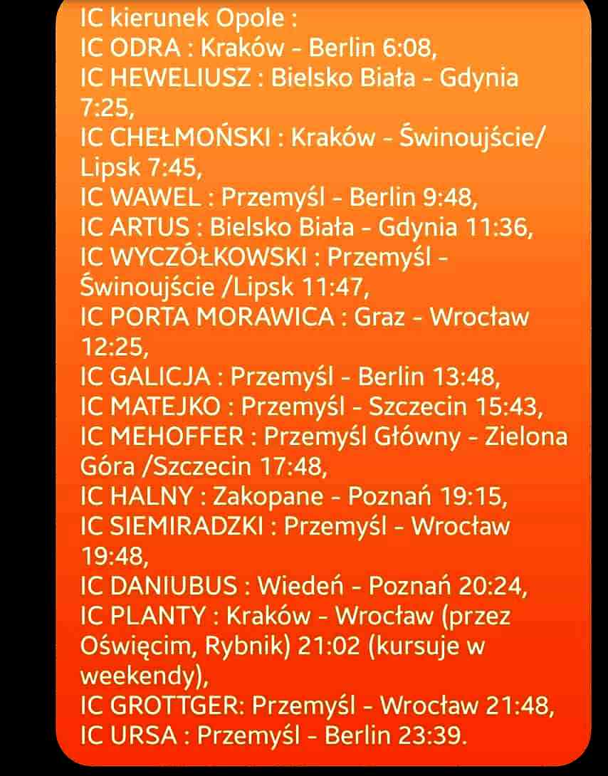 Zwraca on uwagę na fakt, że w przyszłym rozkładzie nie będzie jedynie pociągów IC ROZEWIE oraz IC PRZEMYŚLANIN. Natomiast z pewnością podróżni wyjeżdżający z Kędzierzyna-Koźla, oczekują po jeszcze jednym pociągu do Warszawy i Lublina.