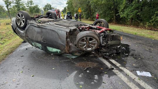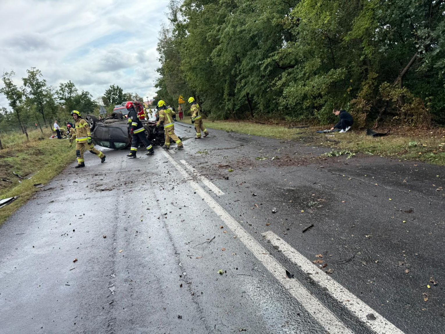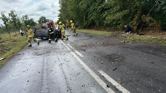 Na miejsce skierowano łącznie pięć zastępów straży pożarnej, patrole policji oraz zespoły ratownictwa medycznego. Po dojeździe potwierdzono zdarzenie. Na łuku drogi kierowca osobowego opla Insignii nie dostosował prędkości do warunków, w wyniku czego stracił panowanie nad pojazdem i dachował.