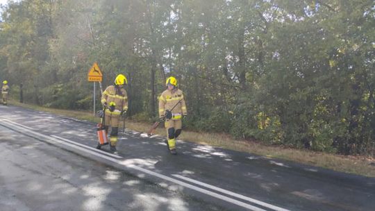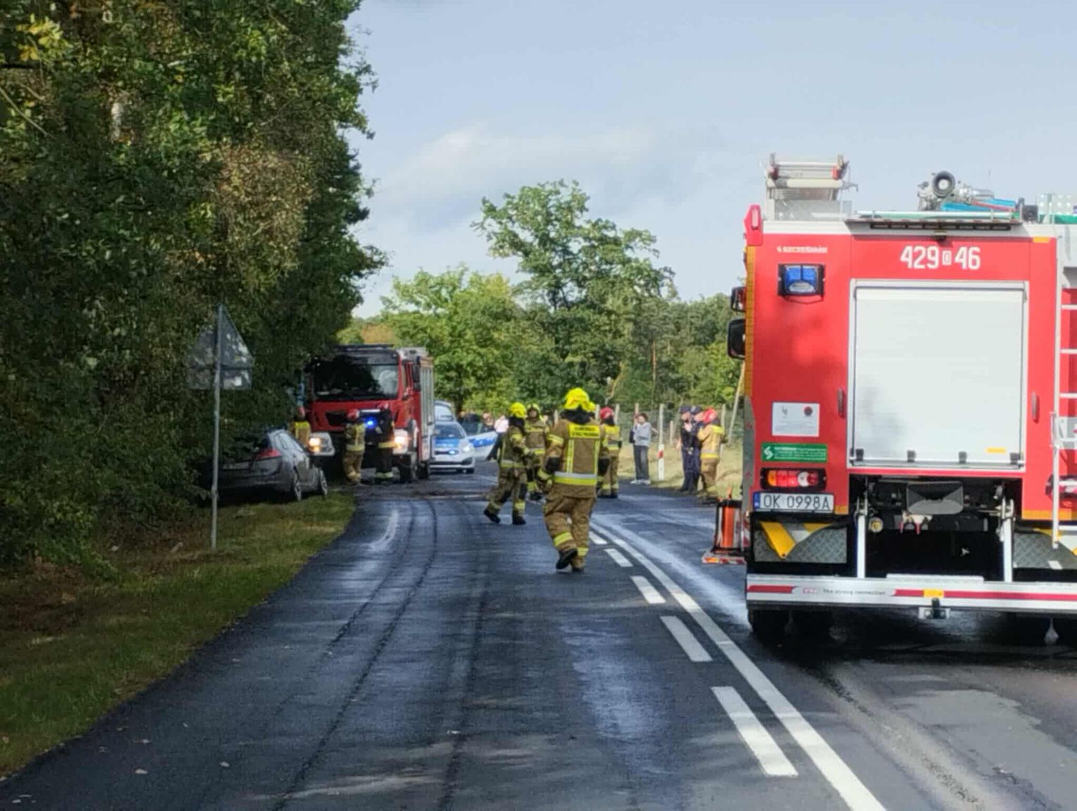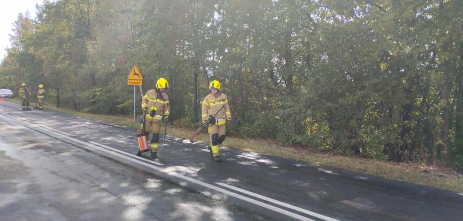 Działania strażaków polegały na zabezpieczeniu miejsca zdarzenia, udzieleniu kwalifikowanej pierwszej pomocy oraz usunięciu rozlanych płynów eksploatacyjnych.