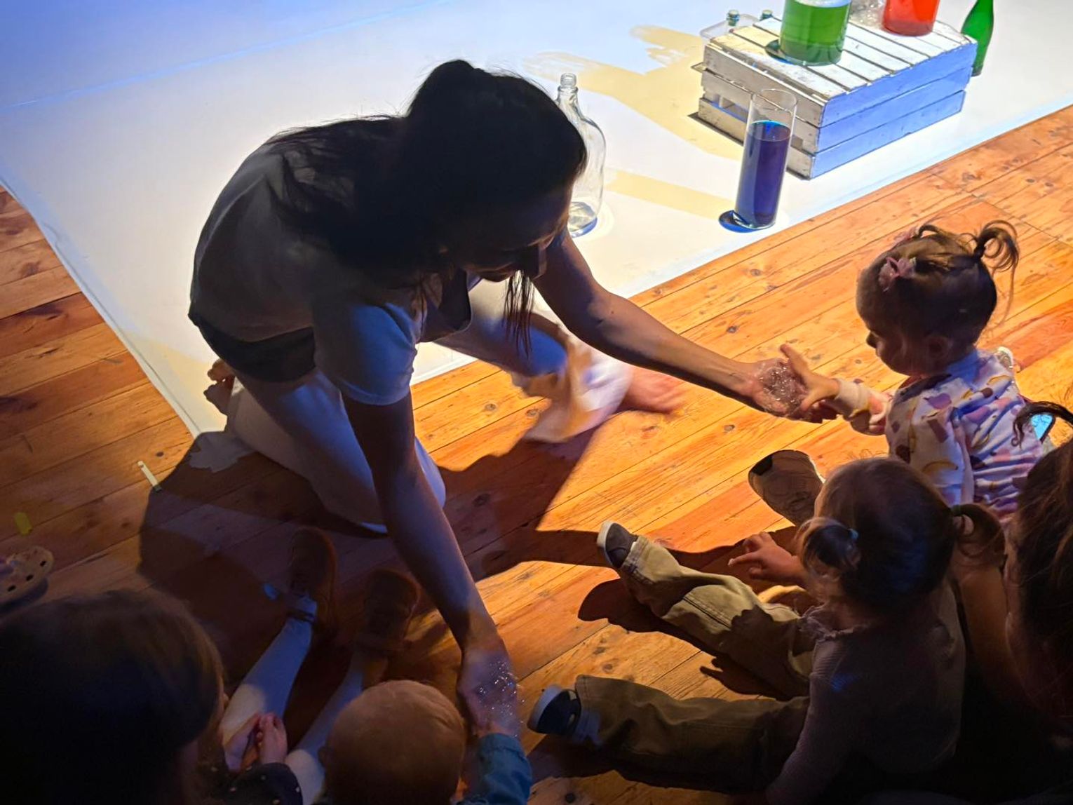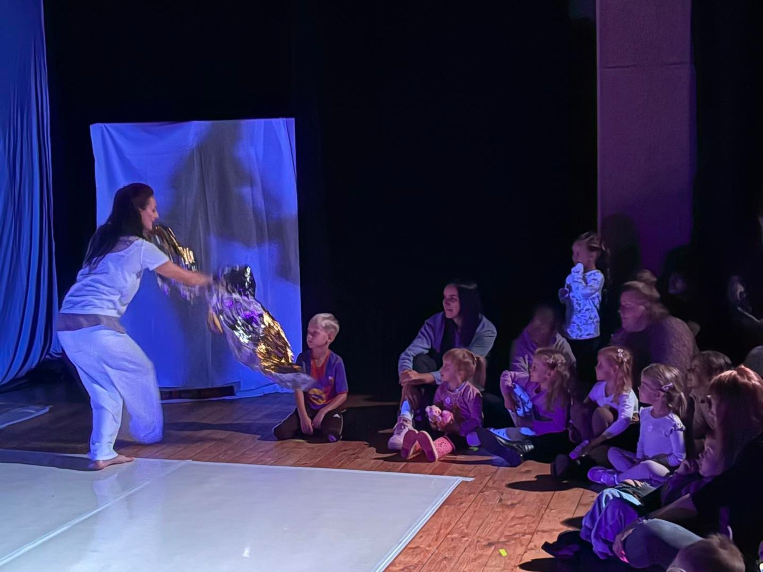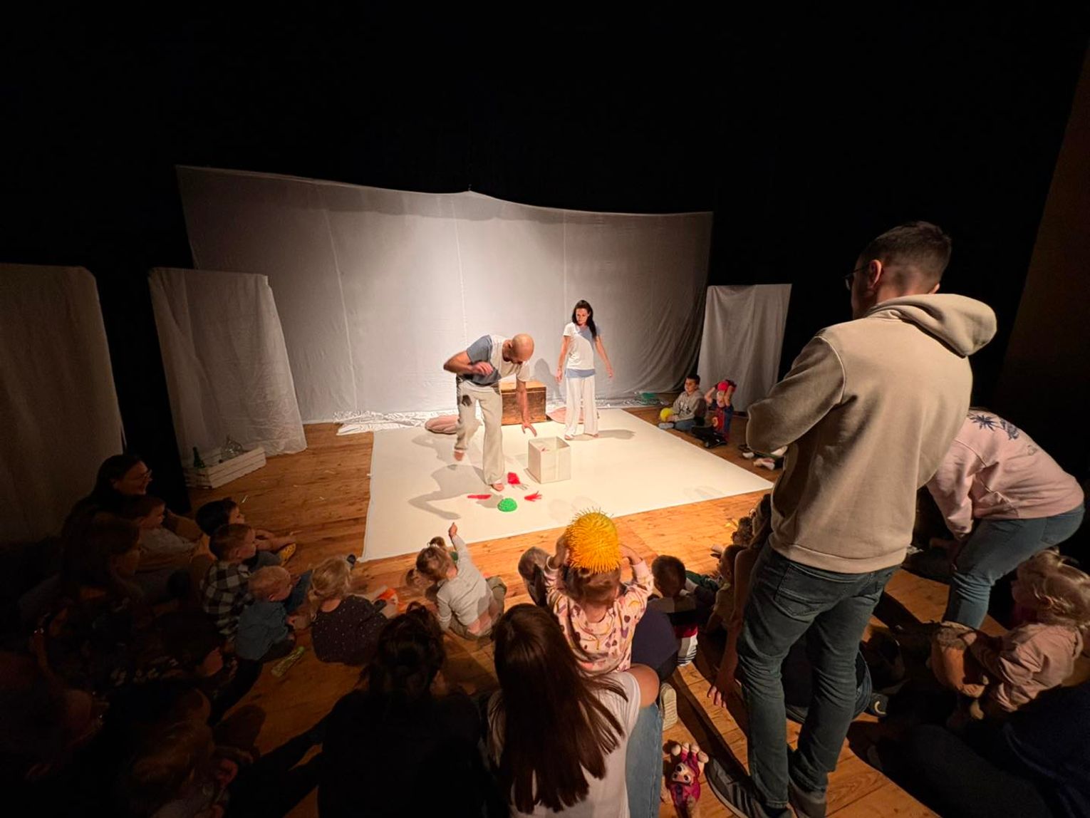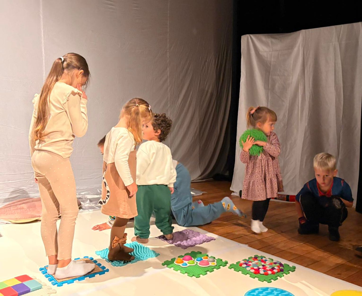 W trakcie widowiska scena otworzyła się również dla publiczności, a milusińscy razem z aktorami wzięli udział w warsztatach sensorycznych To było spotkanie, w którym przedstawienie można było nie tylko oglądać, ale też dotknąć i doświadczyć wszystkimi zmysłami