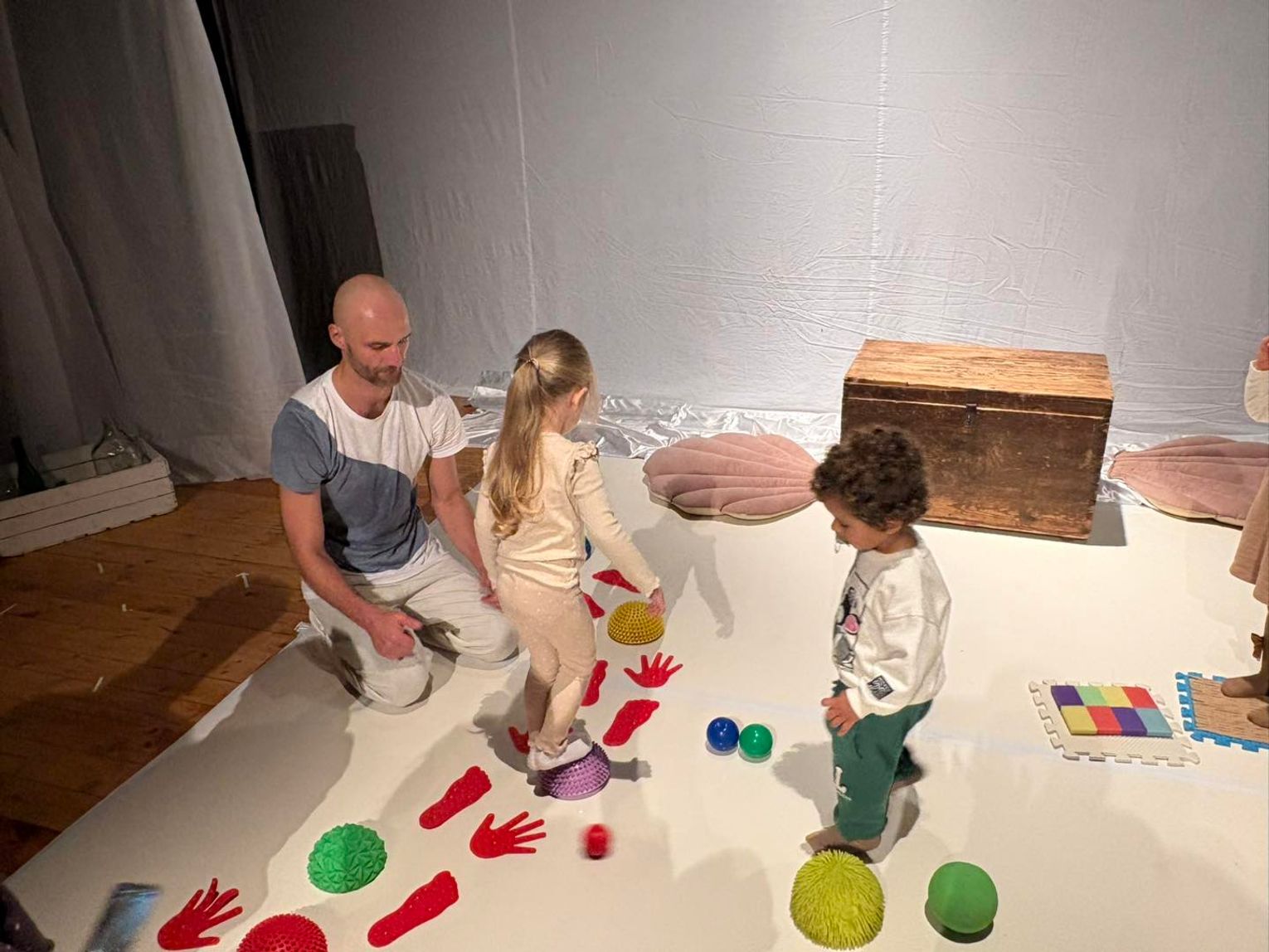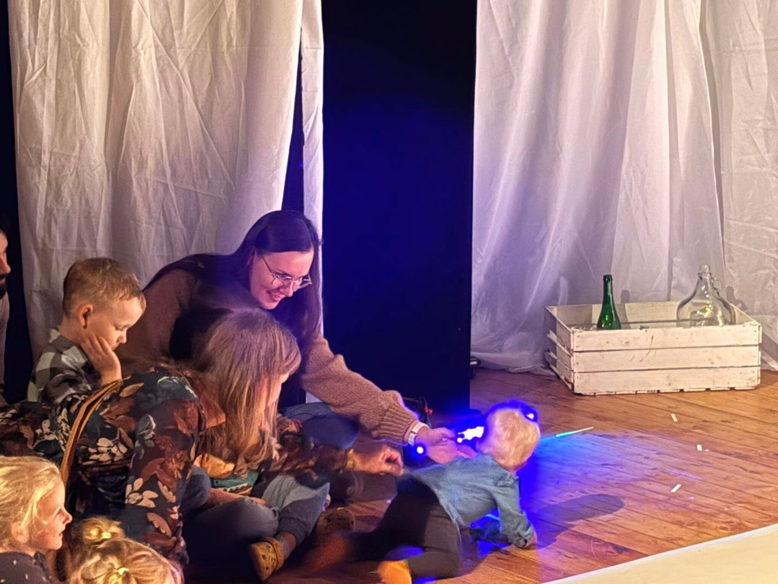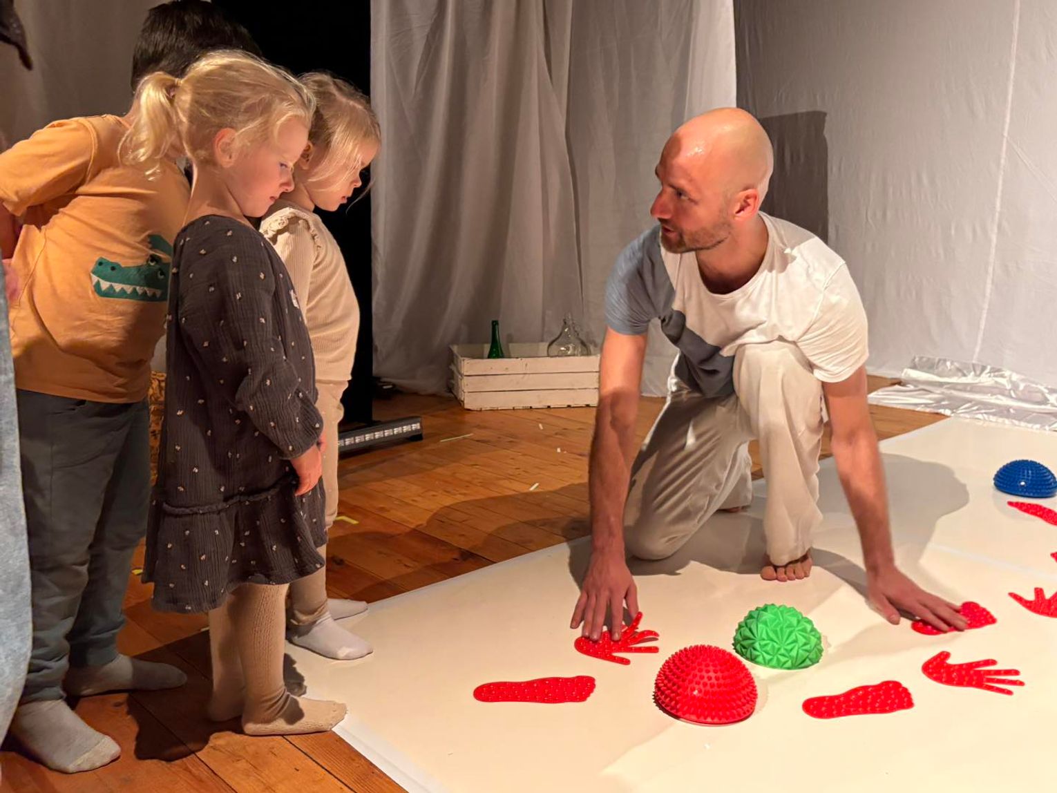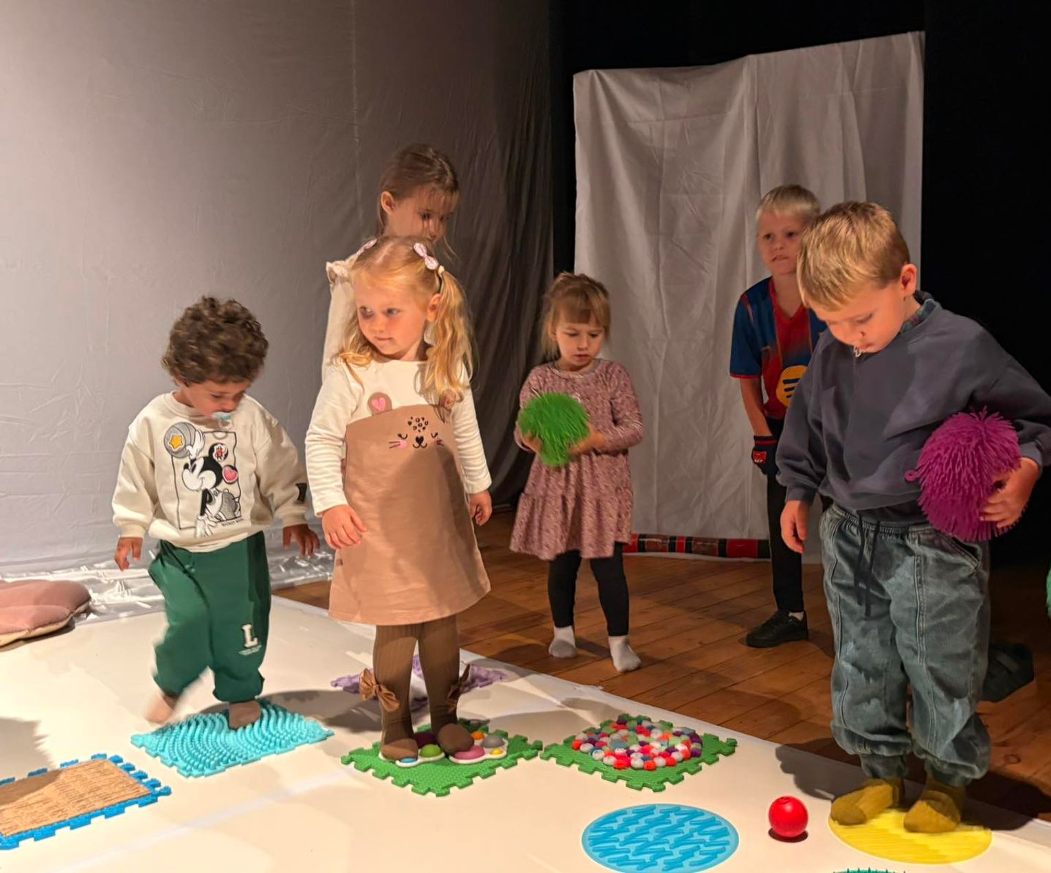 W trakcie widowiska scena otworzyła się również dla publiczności, a milusińscy razem z aktorami wzięli udział w warsztatach sensorycznych To było spotkanie, w którym przedstawienie można było nie tylko oglądać, ale też dotknąć i doświadczyć wszystkimi zmysłami