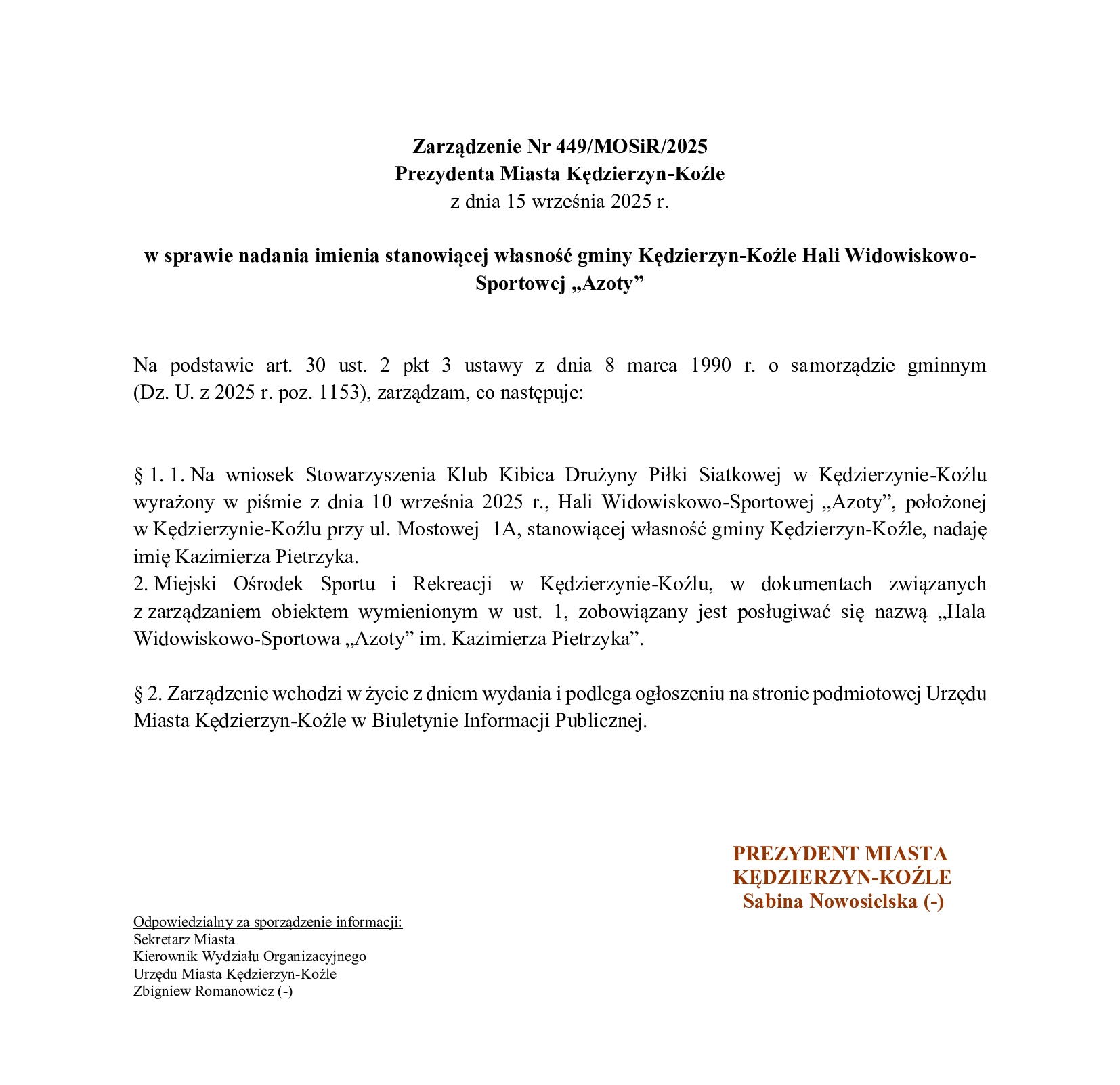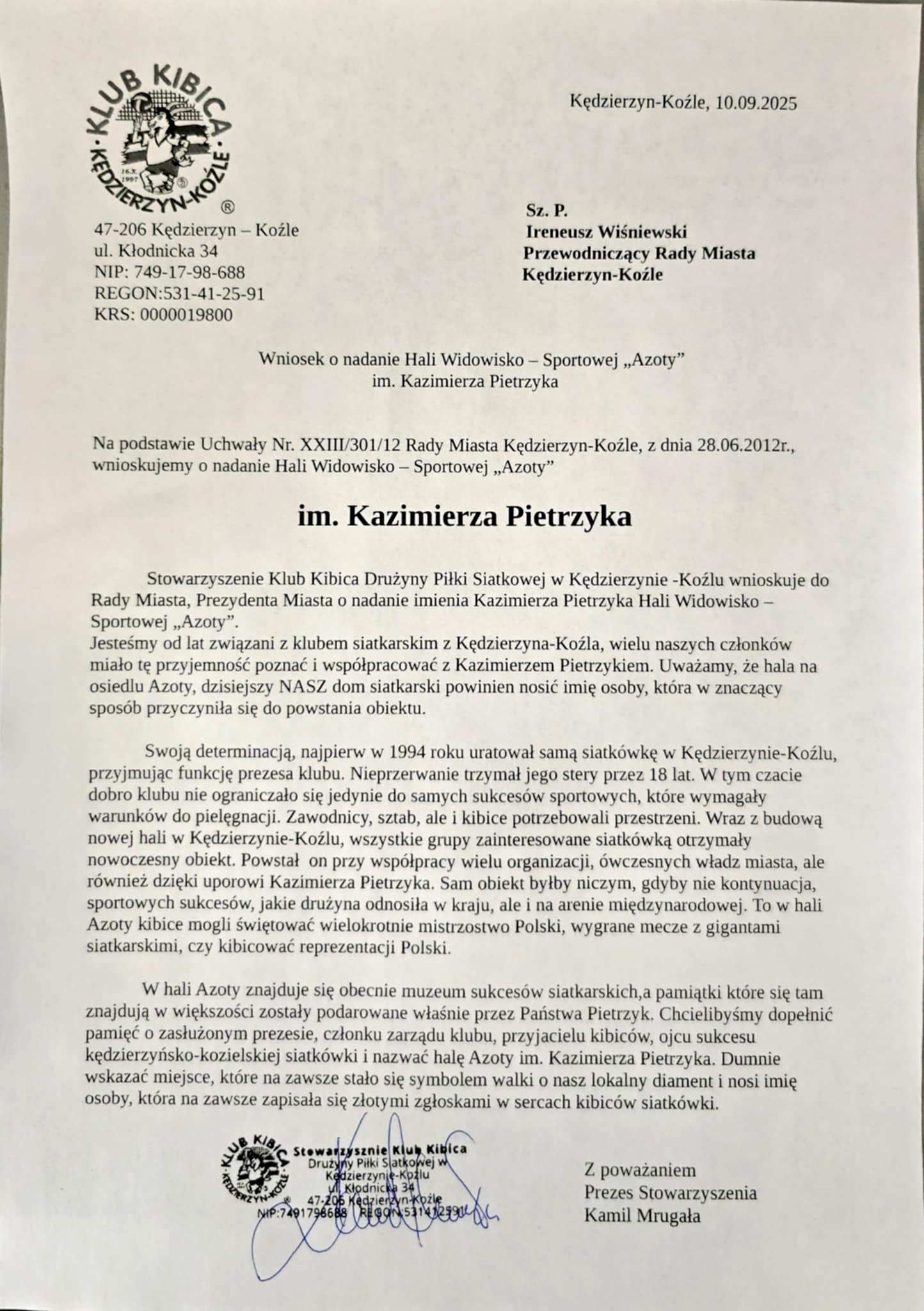 Decyzja ta jest głęboko uzasadniona i symboliczna. To właśnie w hali przy ul. Mostowej 1A drużyna z Kędzierzyna-Koźla świętowała swoje największe sukcesy. Kazimierz Pietrzyk był nie tylko wieloletnim sternikiem klubu, lecz także architektem jego pierwszych triumfów. Dzięki jego zaangażowaniu siatkówka w Kędzierzynie-Koźlu zyskała ogólnopolski i międzynarodowy rozgłos, a drużyna stała się wizytówką miasta. Nazwanie hali jego imieniem to wyraz wdzięczności za lata pracy, poświęcenia i pasji, które włożył w rozwój sportu w regionie.
