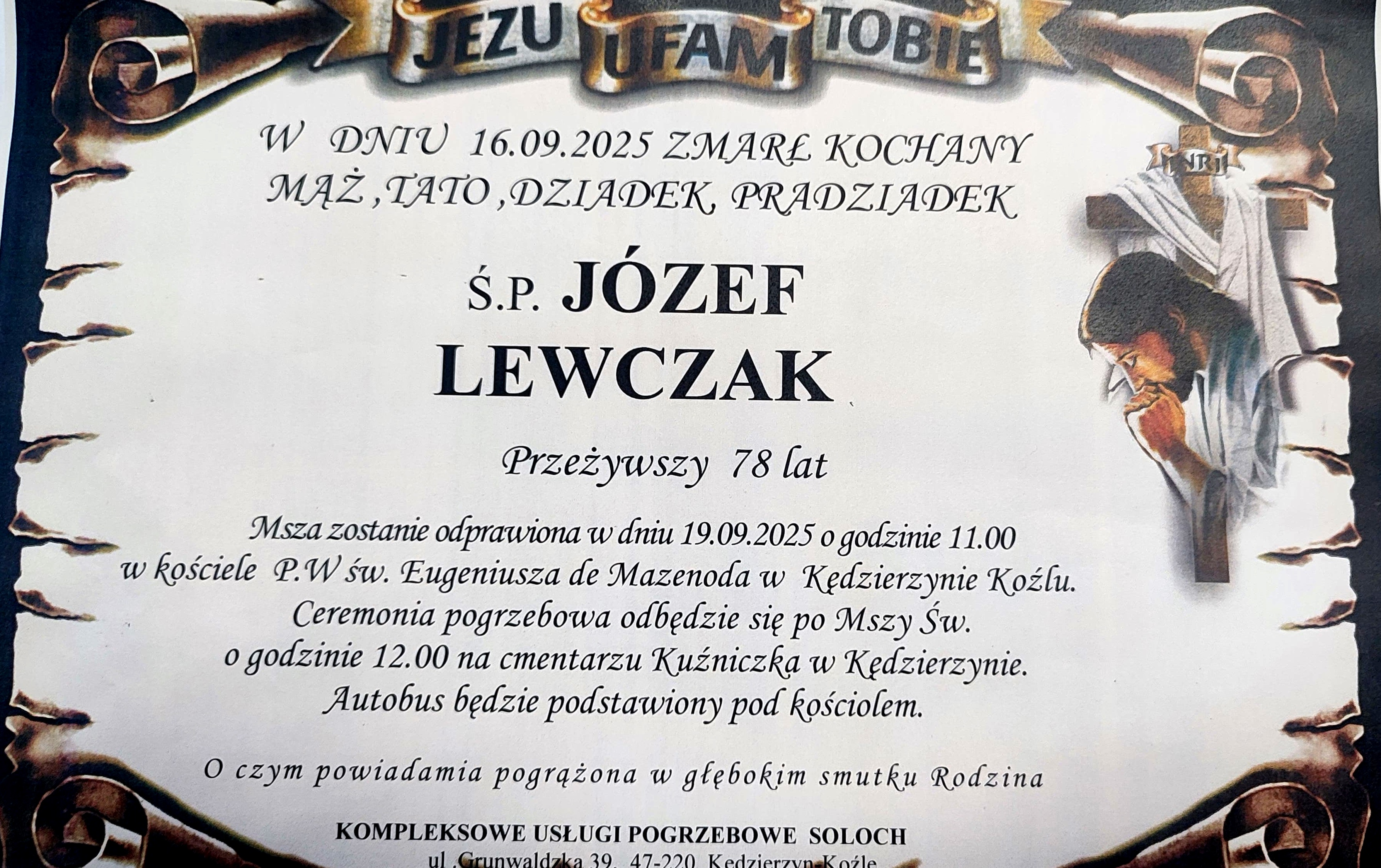 W wielkim smutku informujemy, iż odszedł na wieczną wachtę nasz Kolega, WOPR-owiec, Mors, były Prezydent Miasta Kędzierzyna-Koźla Józef Lewczak. Cześć Jego Pamięci. Wyrazy współczucia dla całej rodziny - czytamy w mediach społecznościowych Wodnego Ochotniczego Pogotowia Ratunkowego.