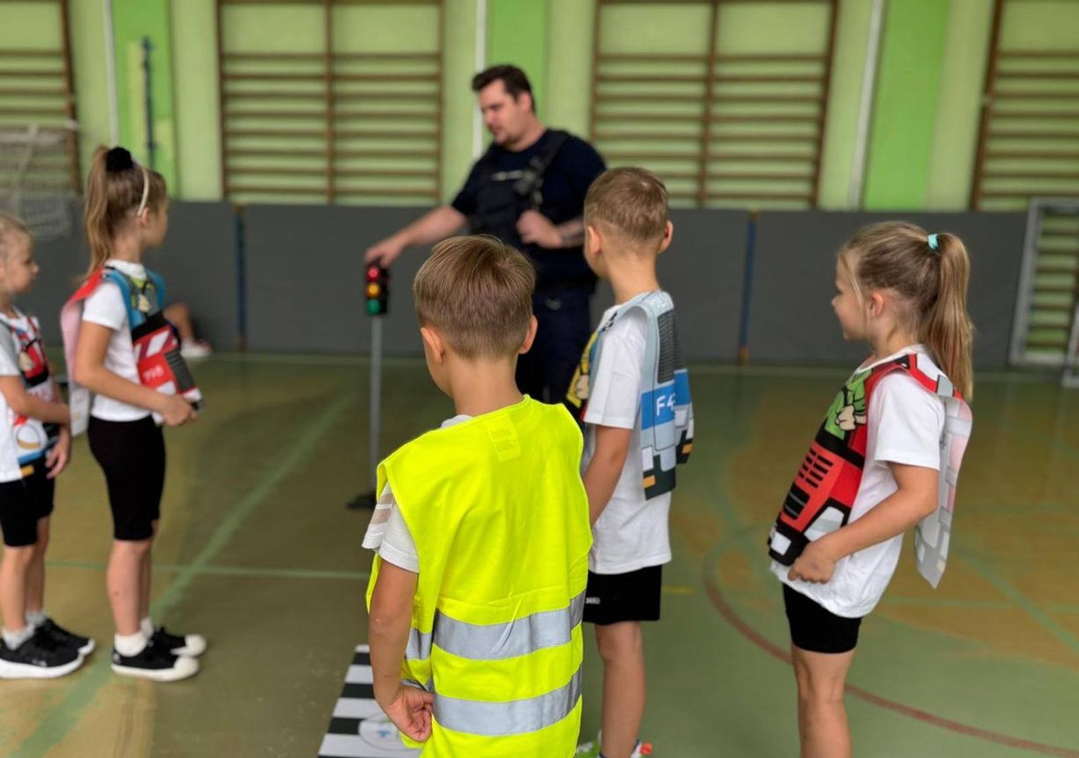 Podczas zajęć mali mieszkańcy regionu sprawdzali swoje umiejętności w mobilnym miasteczku ruchu drogowego. Pod okiem policjantów ćwiczyli przechodzenie przez przejścia dla pieszych i poznawali zasady bezpiecznej jazdy na rowerze czy hulajnodze. Mundurowi zwrócili również uwagę na znaczenie elementów odblaskowych. Pierwszoklasiści otrzymali książeczki edukacyjne zawierające kolorowanki, gry i rebusy, które pomogą im utrwalić podstawowe zasady bezpieczeństwa oraz zdobyć dodatkowe, przydatne informacje.