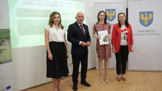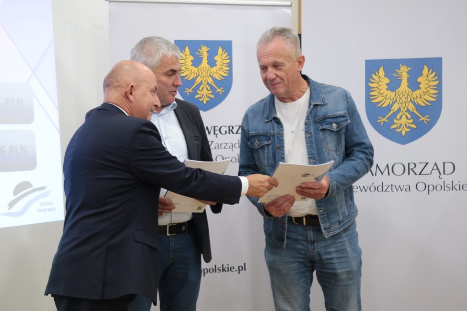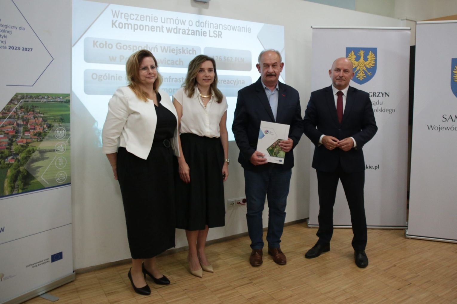 Członek zarządu województwa Robert Węgrzyn wręczył samorządom i organizacjom lokalnym umowy w ramach działania LEADER Planu Strategicznego dla Wspólnej Polityki Rolnej na lata 2023–2027. Od początku roku zarząd województwa zatwierdził już 27 naborów w tym działaniu na kwotę blisko 6,4 mln euro (27,2 mln zł). Tym razem wręczono 11 umów na projekty wyłonione w pięciu naborach, na łączną kwotę niemal dwóch milionów złotych. – Beneficjenci to gminy, osp, koła gospodyń wiejskich i stowarzyszenia, które od lat angażują się w rozwój swoich miejscowości. Dominują głównie projekty infrastruktury lokalnej, takie jak place zabaw – mówił Robert Węgrzyn.