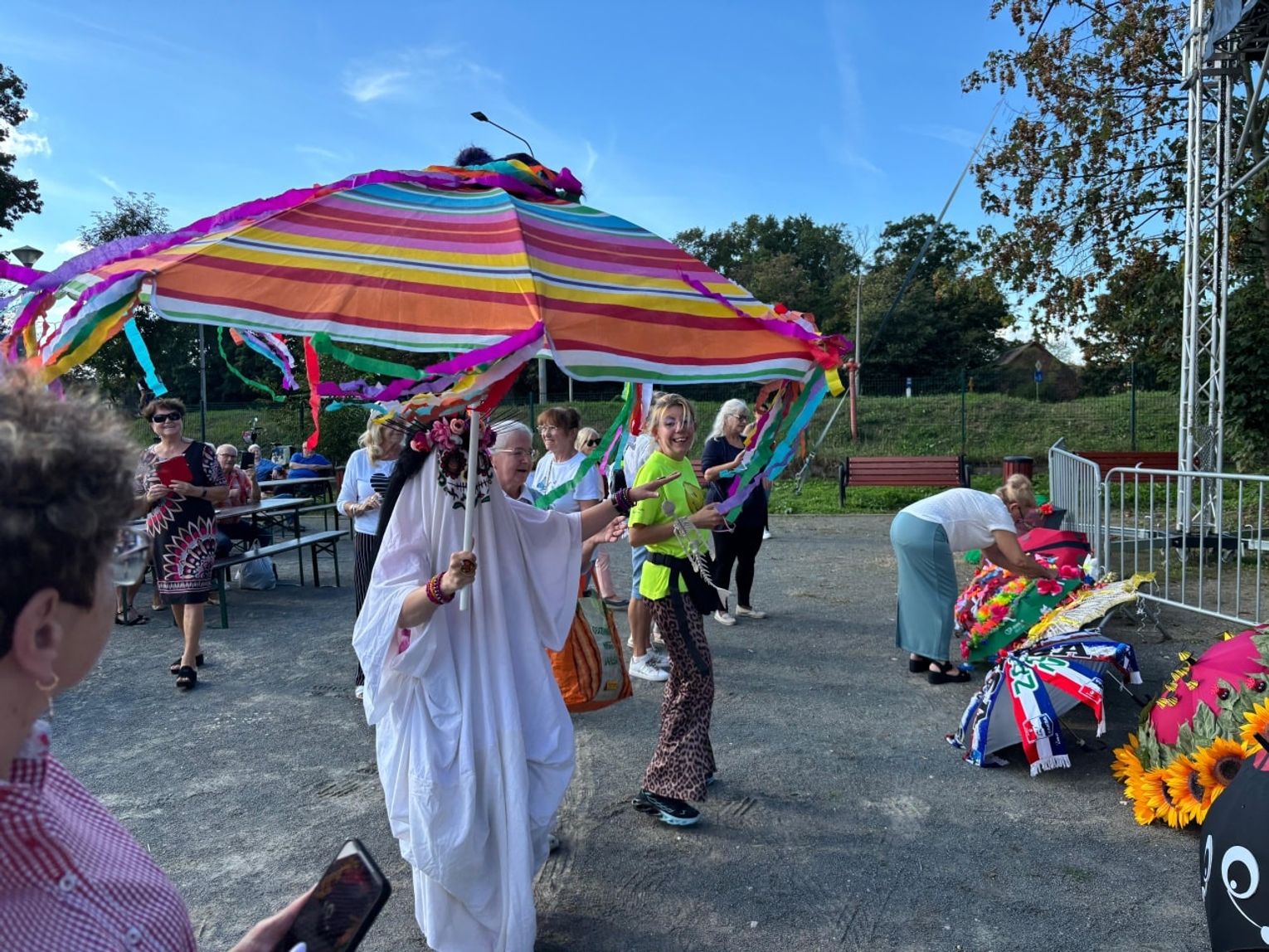 W programie znalazły się stoiska, konkursy i wspólne tańce. Seniorzy wzięli udział w konkursie „Mój parasol ma duszę”, w którym nagrodzono najbardziej pomysłowe prace. O dobrą atmosferę na scenie zadbali zespół Oldersi oraz DJ Kacper, a uczestnicy mogą korzystać z darmowego posiłku i napojów.