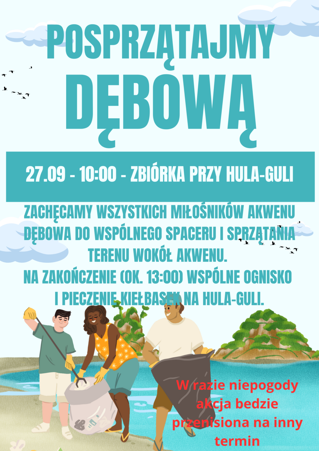 Organizatorzy podkreślają, że Dębowa to nie tylko miejsce wypoczynku, ale także wizytówka regionu. Dzięki takim inicjatywom każdy może przyczynić się do tego, by było tam czysto i bezpiecznie. W razie niepogody akcja zostanie przełożona na inny termin.