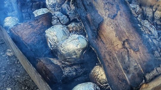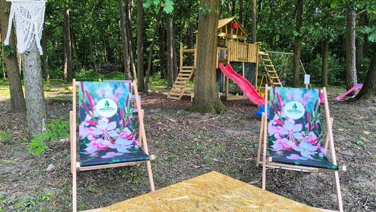 • 🔥 Ognisko z ziemniakami i jabłkami do pieczenia (można przynieść również własny prowiant), kawa, leżaki, plac zabaw, bańki i strefa kreatywna