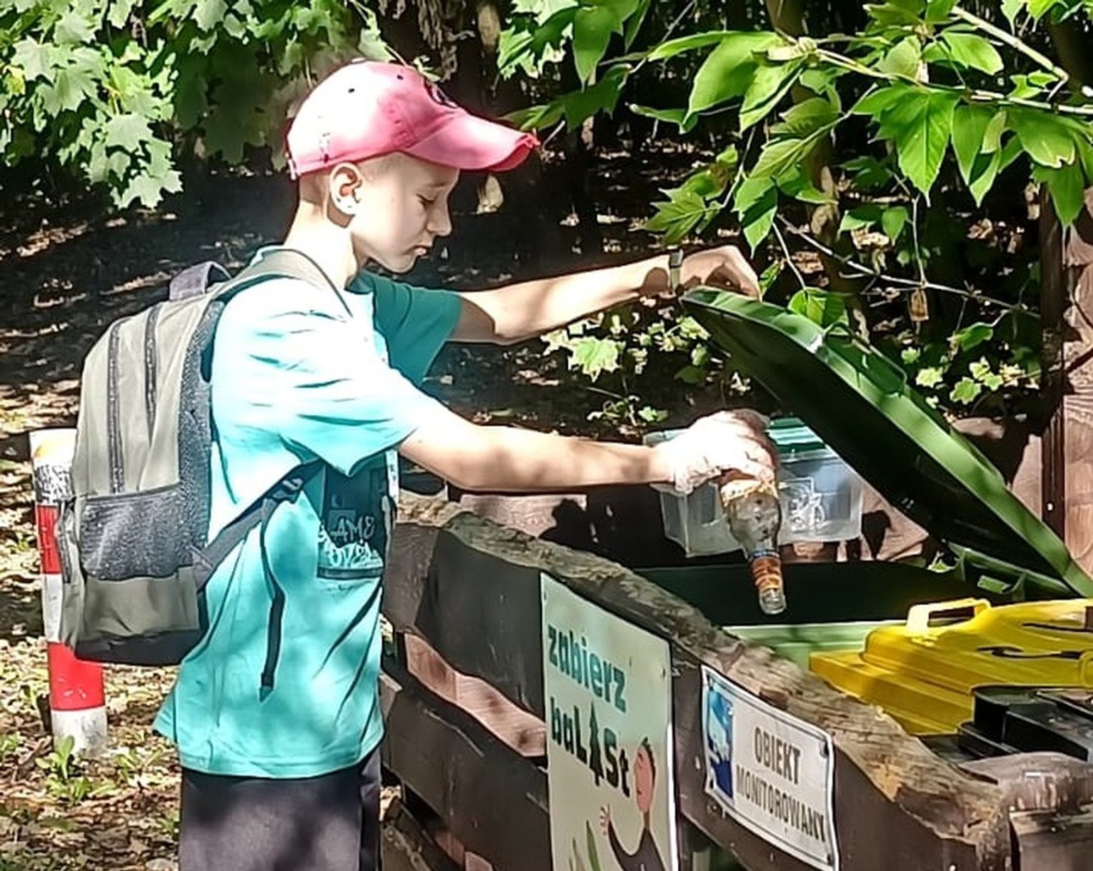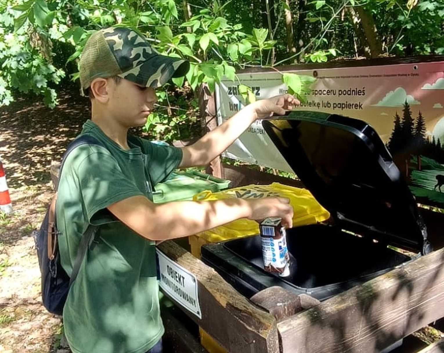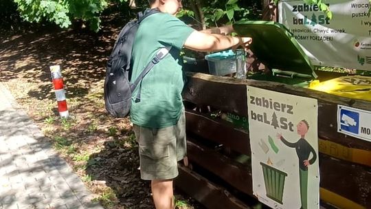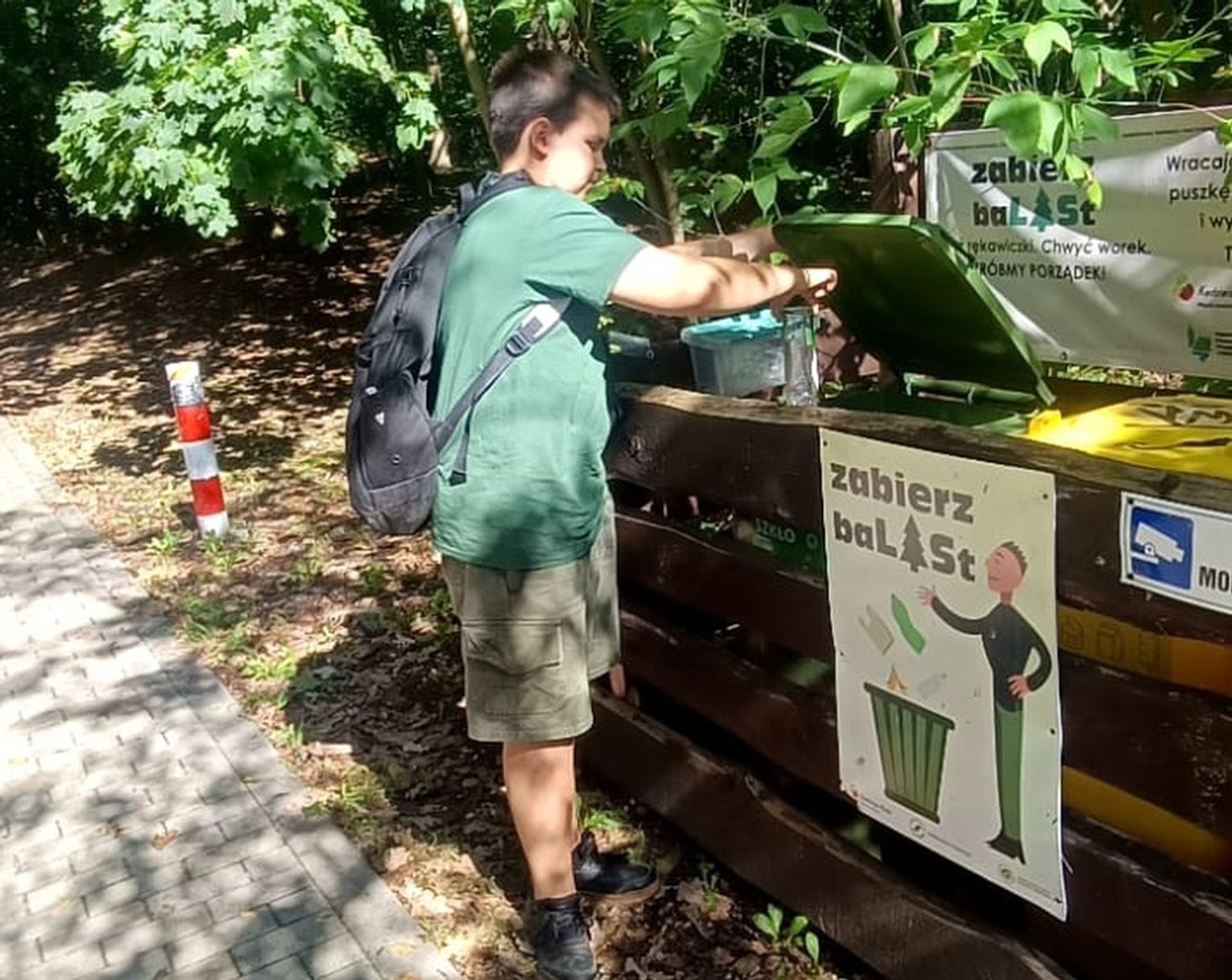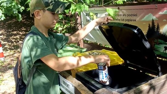 Chłopcy wyruszyli w teren nie tylko na spacer. Pełni energii, wyposażeni w rękawice postanowili zrobić coś dobrego dla środowiska. W krótkim czasie zebrali worki porzuconych butelek, puszek i plastikowych odpadów, które szpeciły okolicę. Ich wysiłek został doceniony. Do harcerzy trafiły symboliczne koszulki "Przyjaciela lasu".