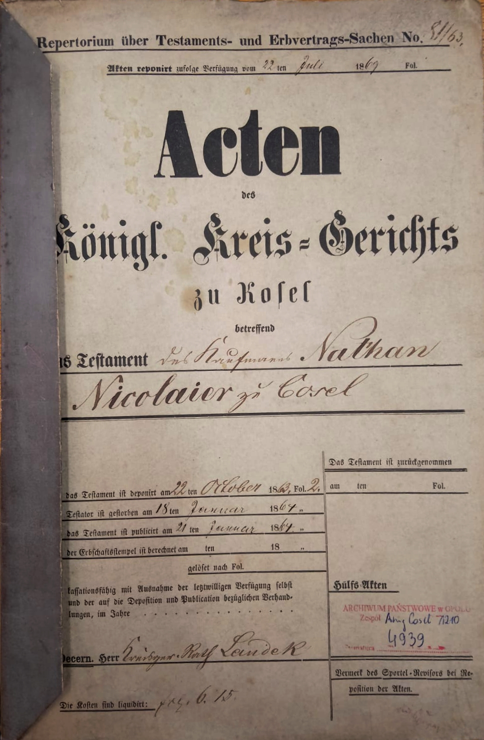 Archiwum Państwowe w Opolu, Sąd Obwodowy w Koźlu, sygn. 4939