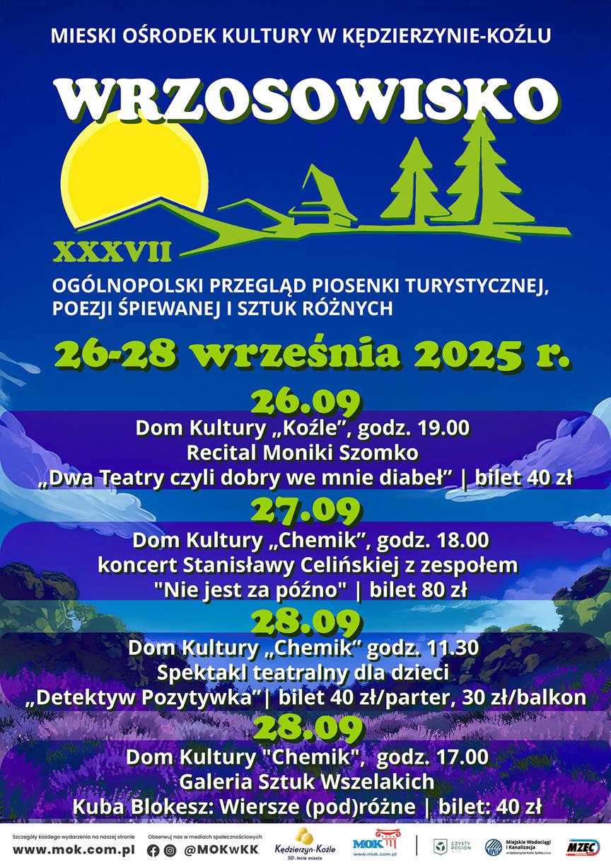 W dniach 26-28 września w Kędzierzynie-Koźlu odbędzie się XXXVII Ogólnopolski Przegląd Piosenki Turystycznej, Poezji Śpiewanej i Sztuk Różnych „Wrzosowisko”. Gospodarzem wydarzeń będzie Miejski Ośrodek Kultury, a program zapowiada się wyjątkowo różnorodnie i klimatycznie.