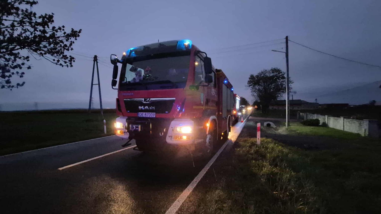 63-letni kierowca w ciężkim stanie został przetransportowany śmigłowcem Lotniczego Pogotowia Ratunkowego do szpitala w Opolu. Pasażer o własnych siłach wyszedł z samochodu.