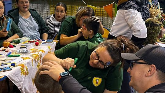 Już od pierwszych minut wydarzenia dało się wyczuć ciepłą, rodzinną atmosferę. Aromaty rozchodzące się wokół rozgrzewały bardziej niż kurtki, a pieczone ziemniaki, gorąca zupa dyniowa oraz kiełbaski z grilla szybko znikały z talerzy. Wielbiciele słodkości również nie mogli narzekać – stoły uginały się pod ciężarem domowych ciast i ciasteczek.