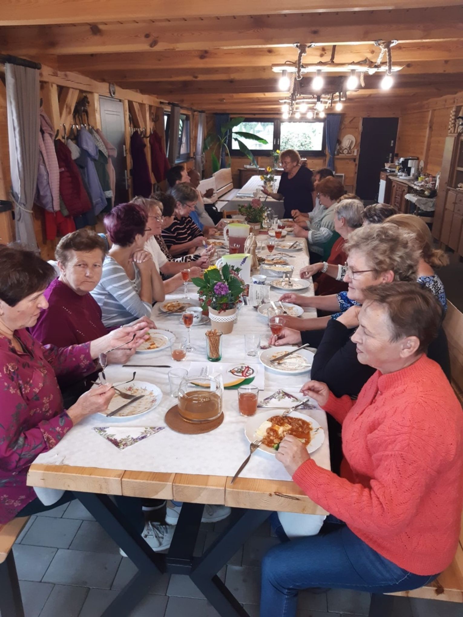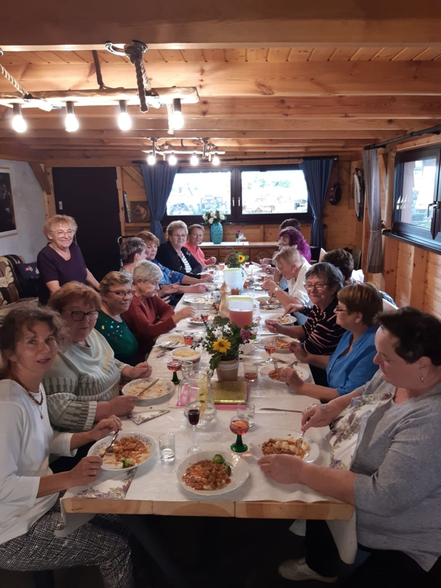 Podczas wizyty seniorki miały okazję zwiedzić gospodarstwo, poznać jego mieszkańców oraz spróbować lokalnych przysmaków. Szczególną uwagę przyciągnęła słynna "ścierka", czyli regionalny specjał, który zachwycił smakiem i aromatem. Spotkanie przebiegało w ciepłej, rodzinnej atmosferze, a uczestniczki mogły poczuć prawdziwe domowe ciepło i serdeczność gospodarzy.