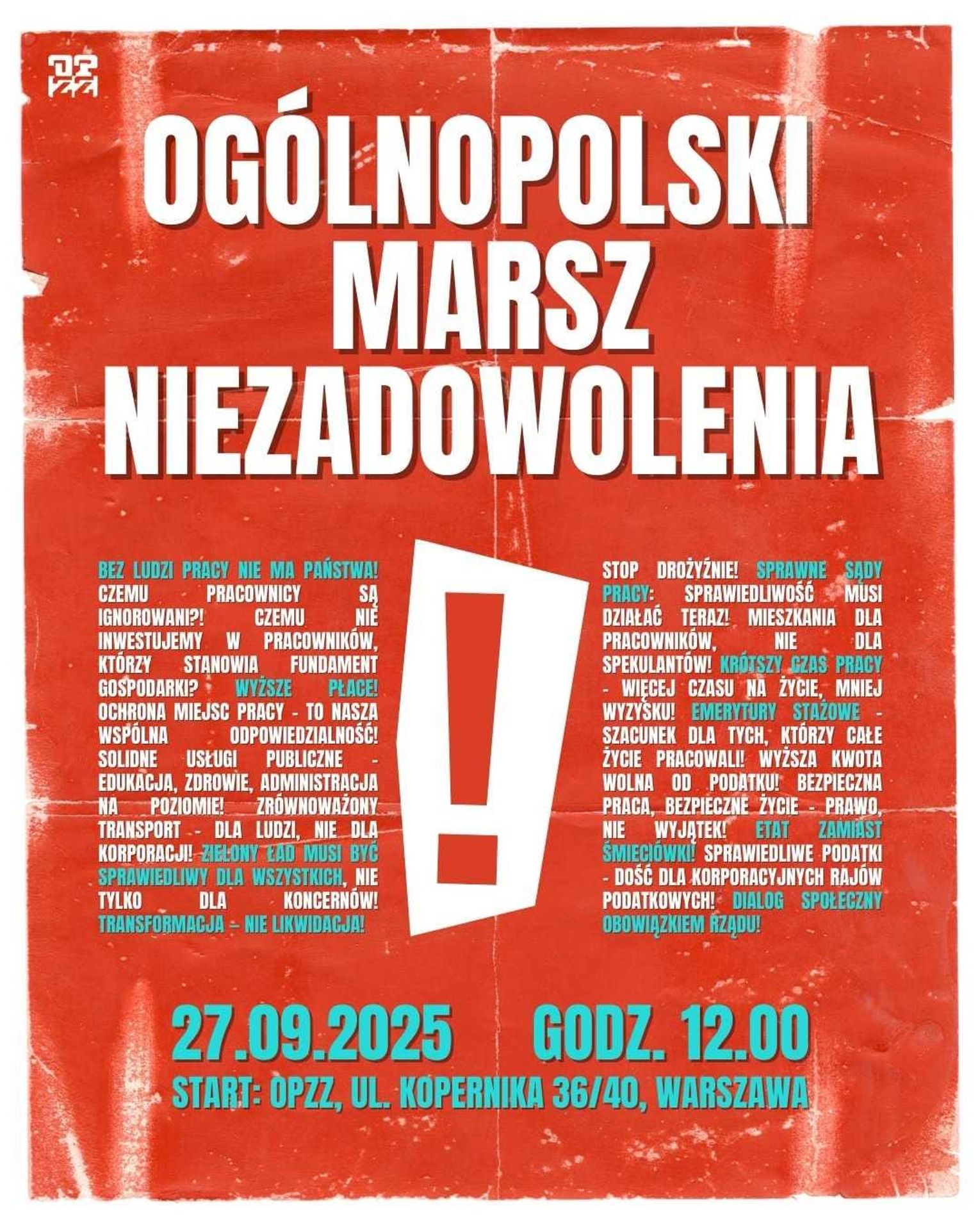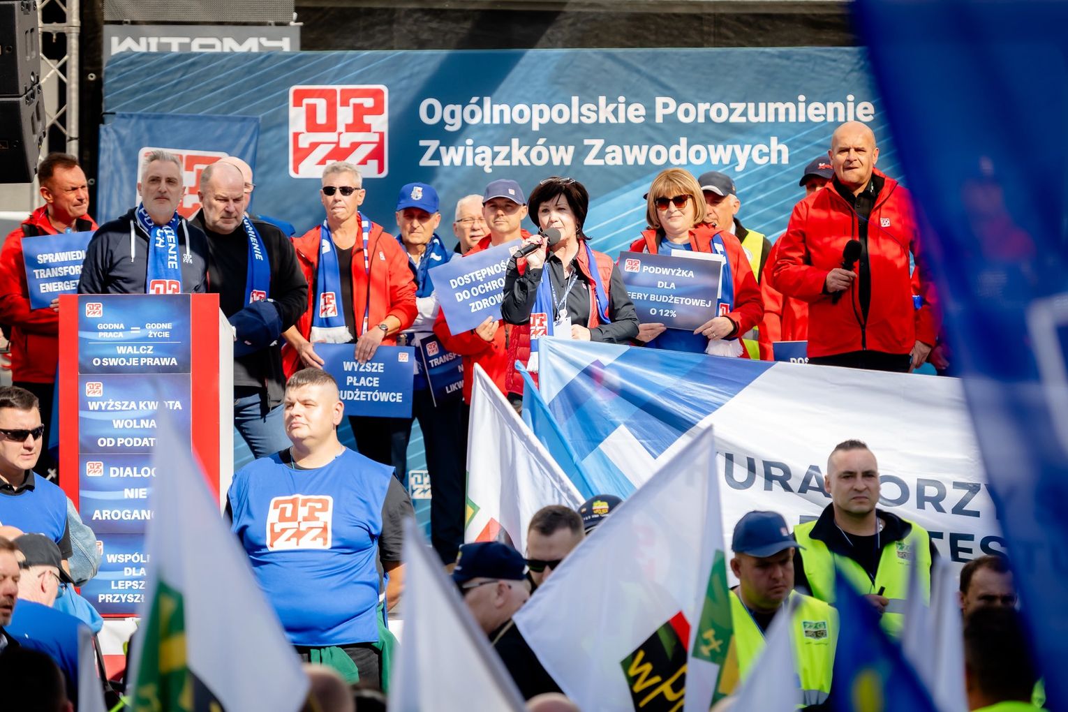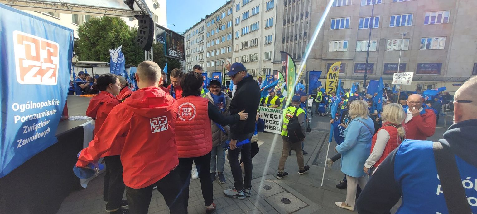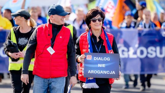 - Dziękujemy za udział w Ogólnopolskim Marszu Niezadowolenia. Ponownie razem pokazaliśmy, jak silny głos mają pracownicy - niezależnie od branży, zawodu i poglądów politycznych. To pracownicy stanowią siłę produkcyjną gospodarki i są „solą tej ziemi”. Zrzeszeni w związki zawodowe dopełniamy równowagę społeczną. Jako szef Rady OPZZ Województwa Opolskiego czuję dumę z naszego regionu – znów byliśmy razem z tysiącami związkowców z całej Polski, którzy przyjechali walczyć o szacunek, godne warunki pracy i przyszłość pracowników wszystkich branż, by chronić miejsca pracy. Bardzo Wam za to dziękuję – bo to przyszłość nasza i naszych pokoleń - przekazał Wojciech Rajchel.