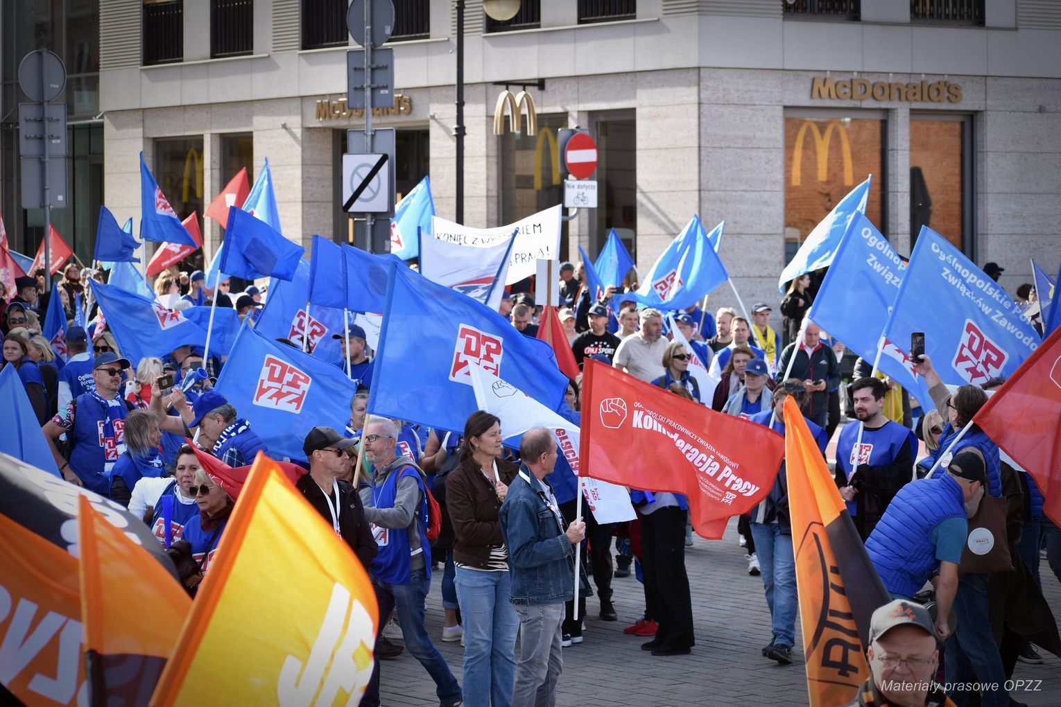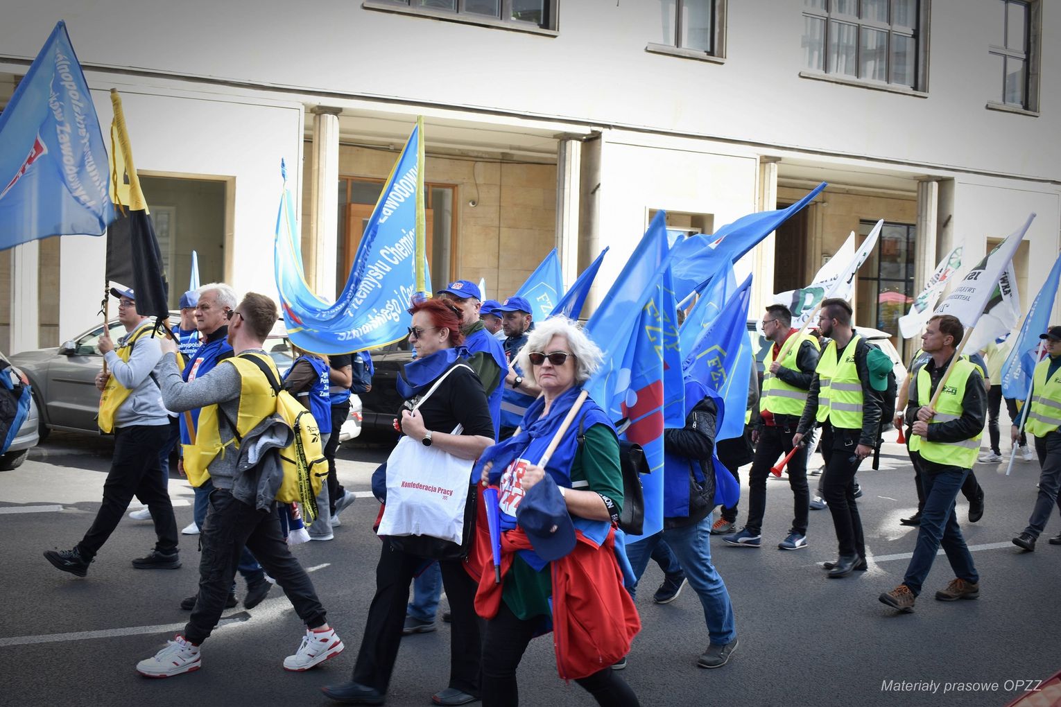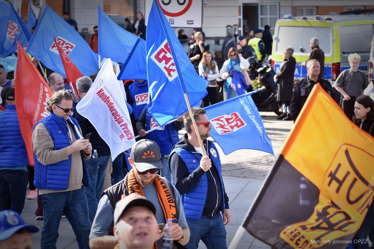 - Przyjechali protestować pracownicy wszystkich branż, m.in. usług publicznych, ochrony zdrowia, Policji, Grupy Azoty, ZUS-u i Poczty Polskiej - wymienia Wojciech Rajchel, przewodniczący Rady OPZZ Województwa Opolskiego.