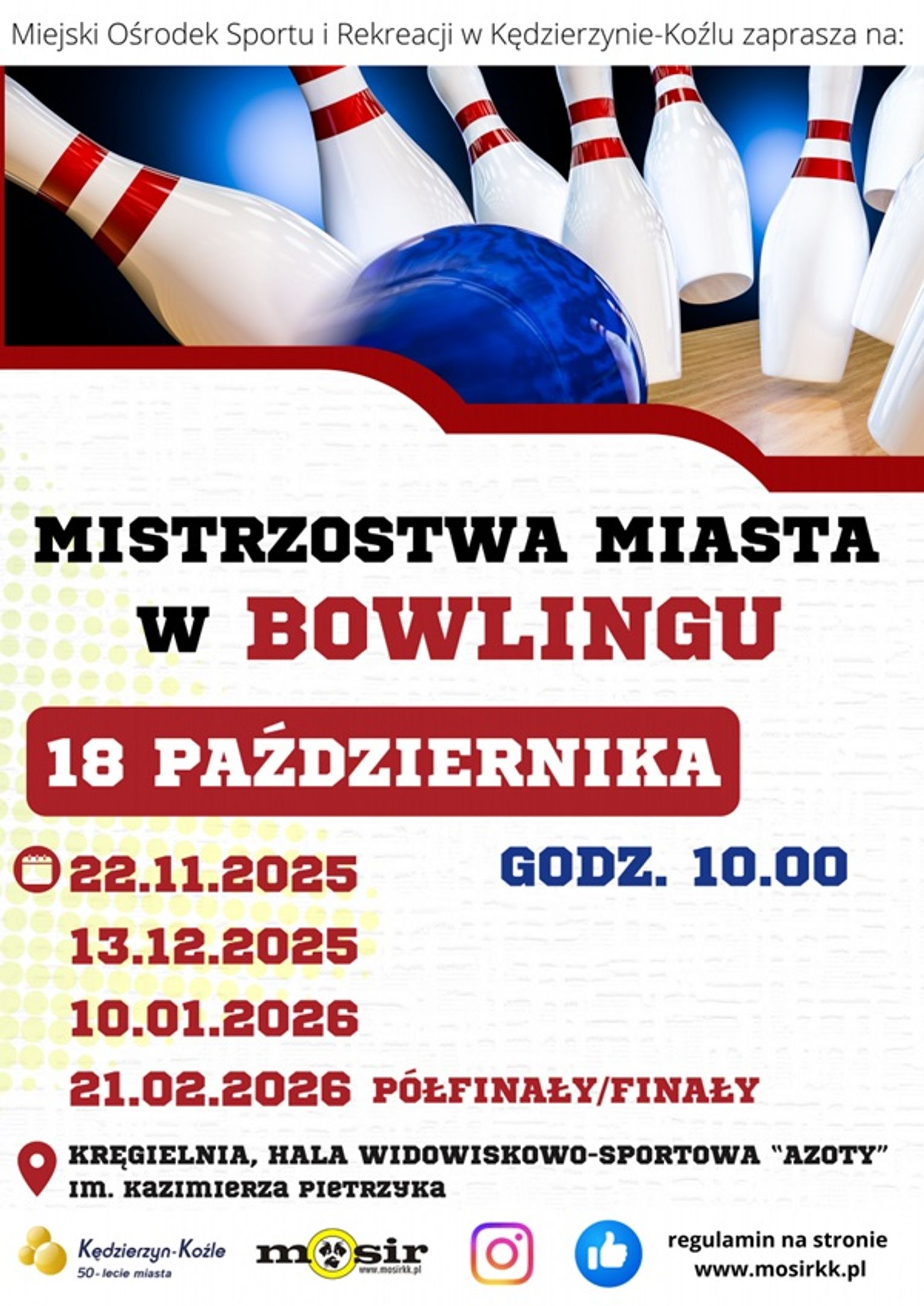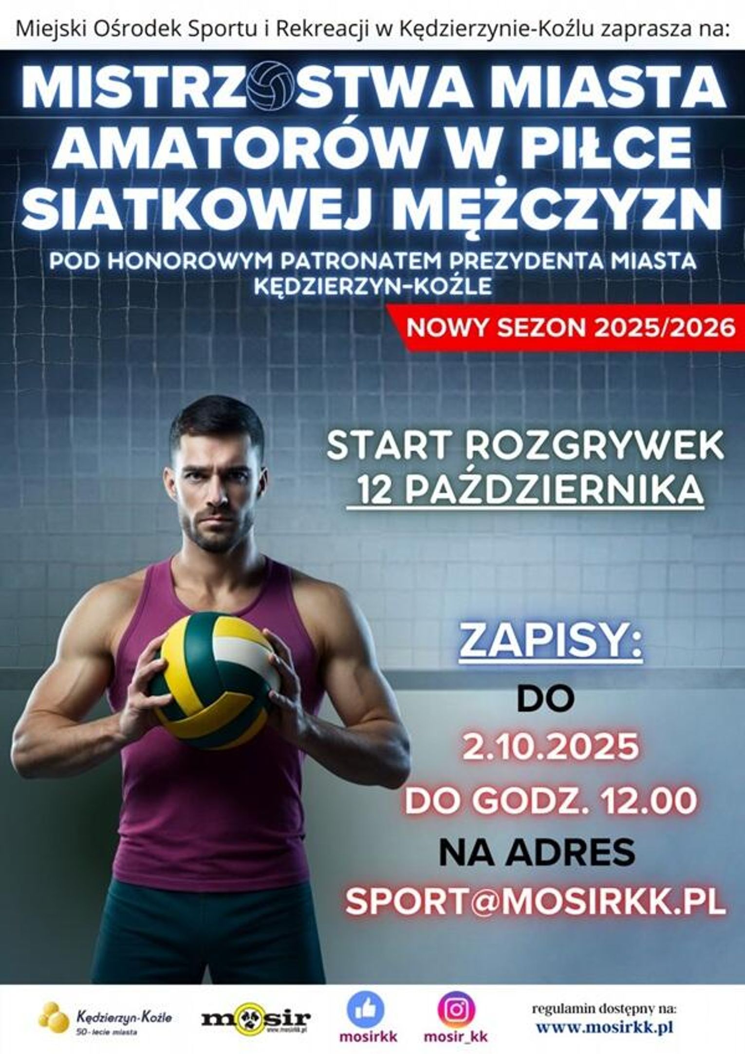 Jesienią w Kędzierzynie-Koźlu startuje kolejna edycja Mistrzostw Miasta Amatorów pod honorowym patronatem prezydenta miasta. W programie znalazły się zmagania w koszykówce, siatkówce, bowlingu oraz tenisie stołowym. Pierwsze spotkania już 4 października w Zespole Szkół nr 1 przy ul. Skarbowej, gdzie rozpoczną się rozgrywki koszykarskie. Tydzień później, 12 października, sezon zainaugurują siatkarze. Ich mecze odbywać się będą w halj „Śródmieście” przy al. Jana Pawła II oraz w hali „Azoty” im. Kazimierza Pietrzyka przy ul. Mostowej. W drugiej połowie miesiąca emocje przeniosą się na kręgielnię w hali "Azoty", gdzie 18 października odbędą się pierwszej zawody w bowlingu, a dzień później, 19 października, w hali „Śródmieście” zmierzą się miłośnicy tenisa stołowego. Październik otwiera sportowy sezon 2025/2026, który potrwa przez kolejne miesiące i obejmie zawody w kolejnych dyscyplinach. Mistrzostwa organizuje Miejski Ośrodek Sportu i Rekreacji w Kędzierzynie-Koźlu.