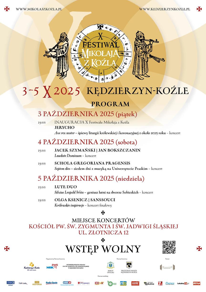Rok 2025 to czas obchodów 1000-lecia Królestwa Polskiego, dlatego program festiwalu będzie nawiązywał do bogatego dziedzictwa historycznego i kulturowego naszego kraju. W ramach dziesiątej edycji zaplanowano pięć niezwykłych koncertów, podczas których usłyszymy artystów interpretujących muzykę dawną, inspirowaną tysiącletnią historią polskiej państwowości. Festiwal odbędzie się w kościele pw. św. Zygmunta i św. Jadwigi Śląskiej przy ul. Złotniczej 12 w Koźlu. Wstęp jest bezpłatny.