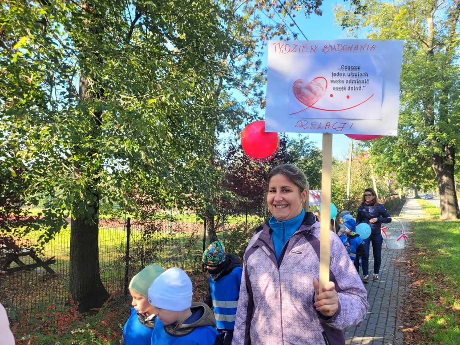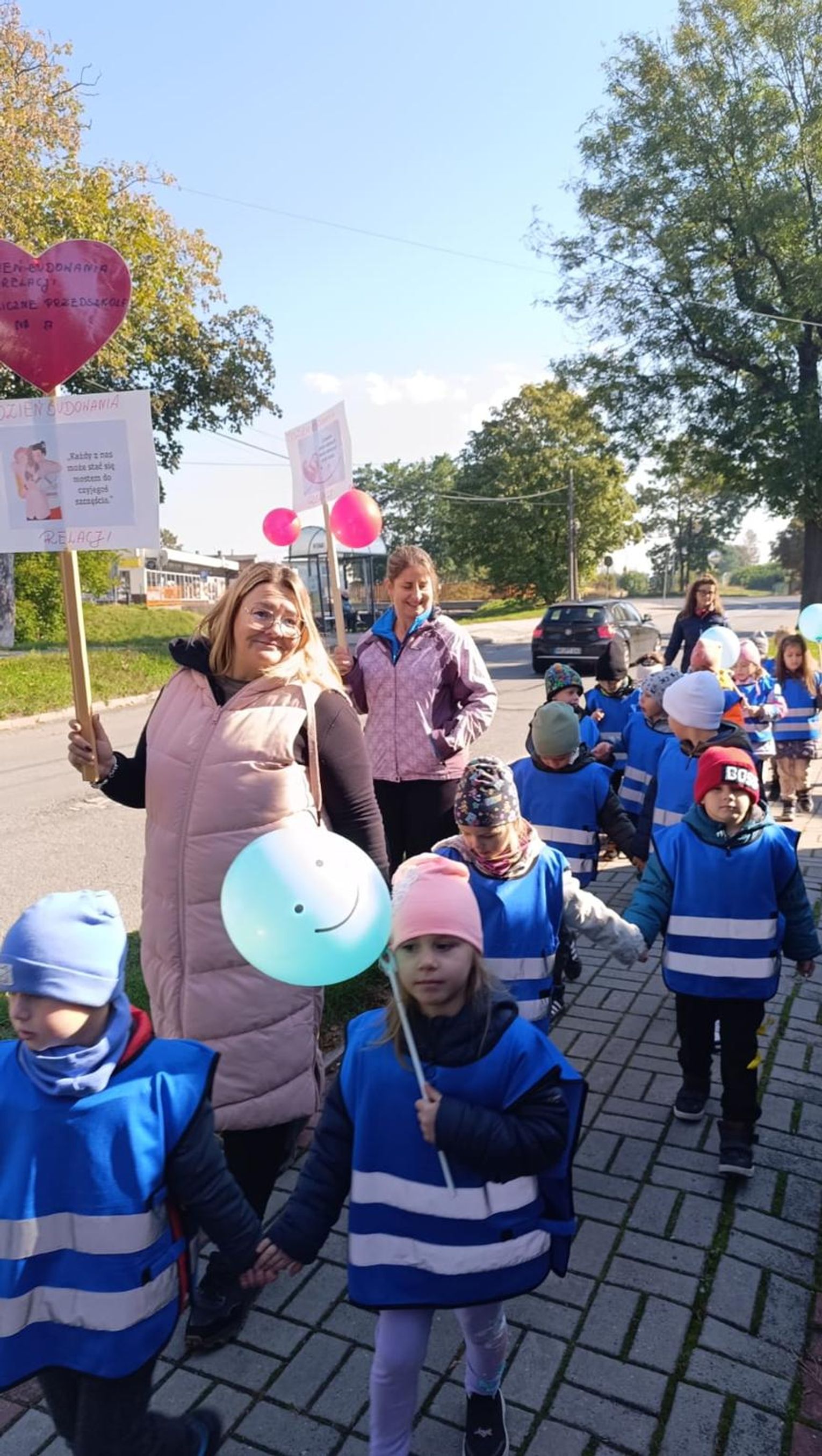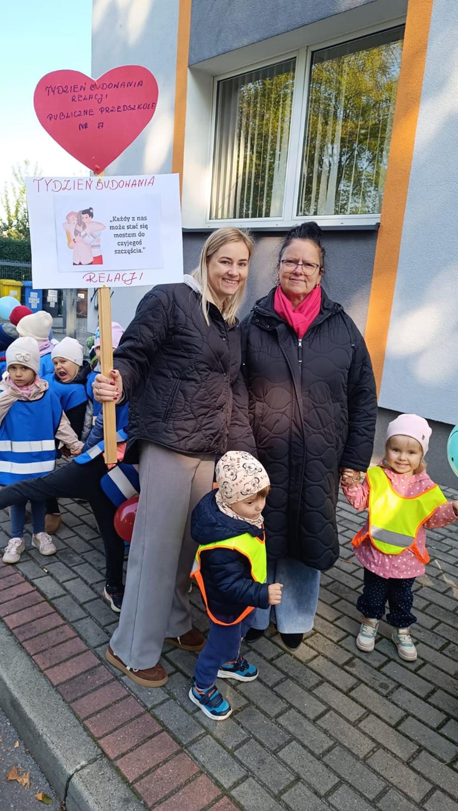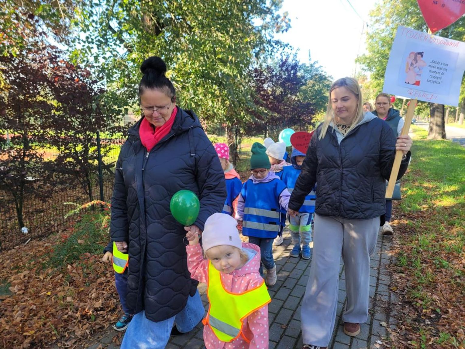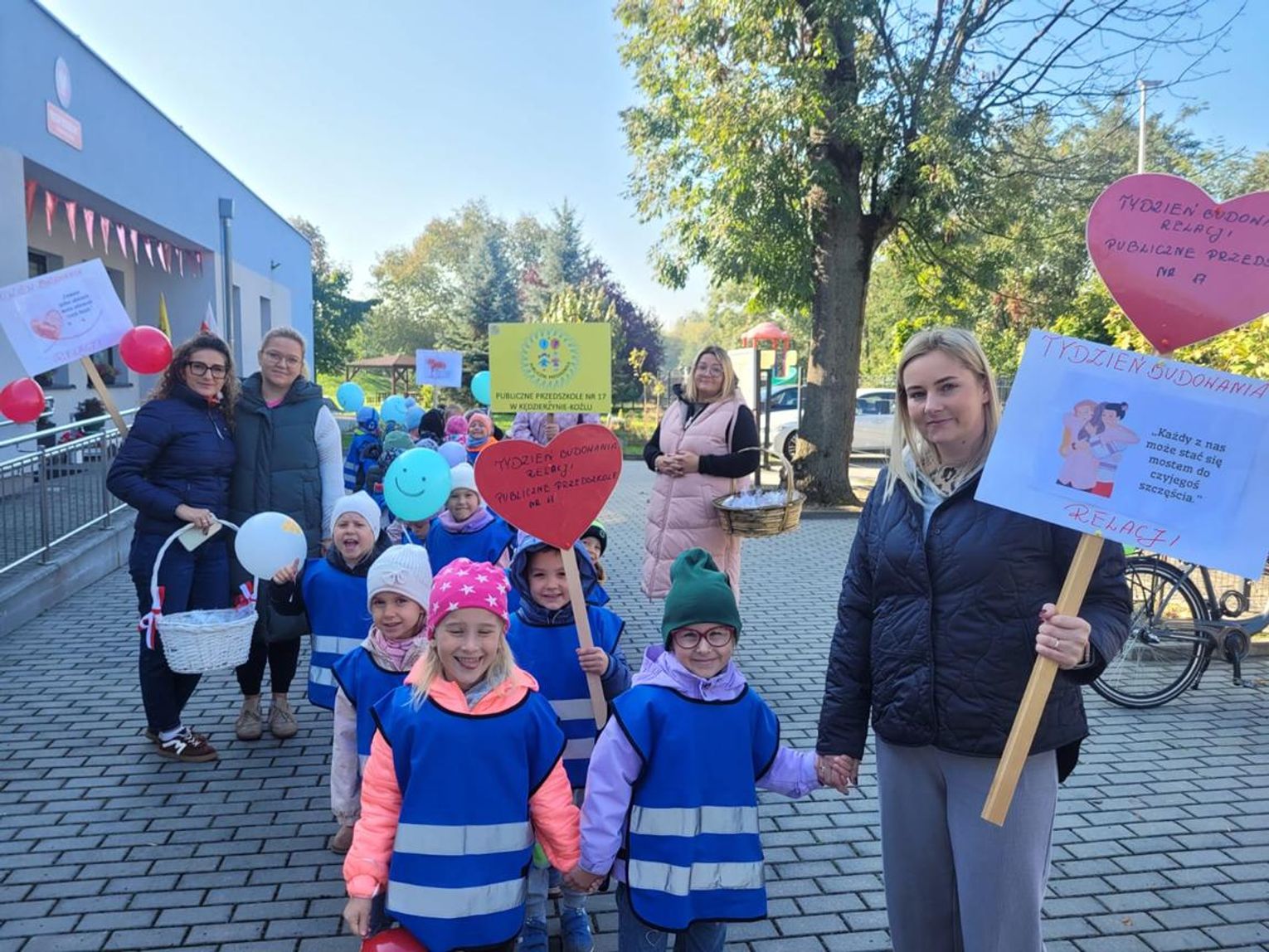 Podsumowaniem „Tygodnia o budowaniu relacji” było wspólne pieczenie serduszkowych ciasteczek. Następnie liczna delegacja przedszkola wyruszyła autobusem do Koźla, by odwiedzić m.in. urząd miasta, redakcję Radia Park oraz Miejską Bibliotekę Publiczną. W każdej z instytucji dzieci obdarowywały pracowników słodkimi upominkami i serdecznymi życzeniami. Zwieńczeniem całego przedsięwzięcia był piątkowy „Pochód Dobrych Relacji”, podczas którego wszystkie grupy przedszkolne przeszły ulicami osiedla Kłodnica, rozdając mieszkańcom ciasteczka i dobre słowa.