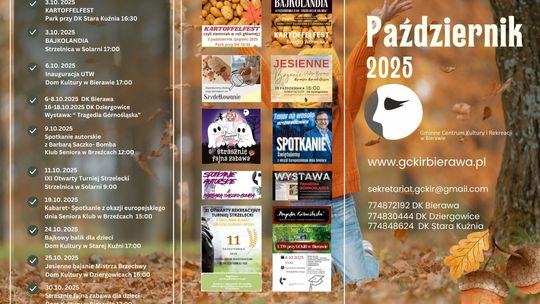 Od warsztatów kulinarnych, przez spektakle dla dzieci, aż po festiwal ziemniaka - każdy znajdzie coś dla siebie. Październik w gminie Bierawa to czas, kiedy kultura, edukacja i rekreacja splatają się w jedno.