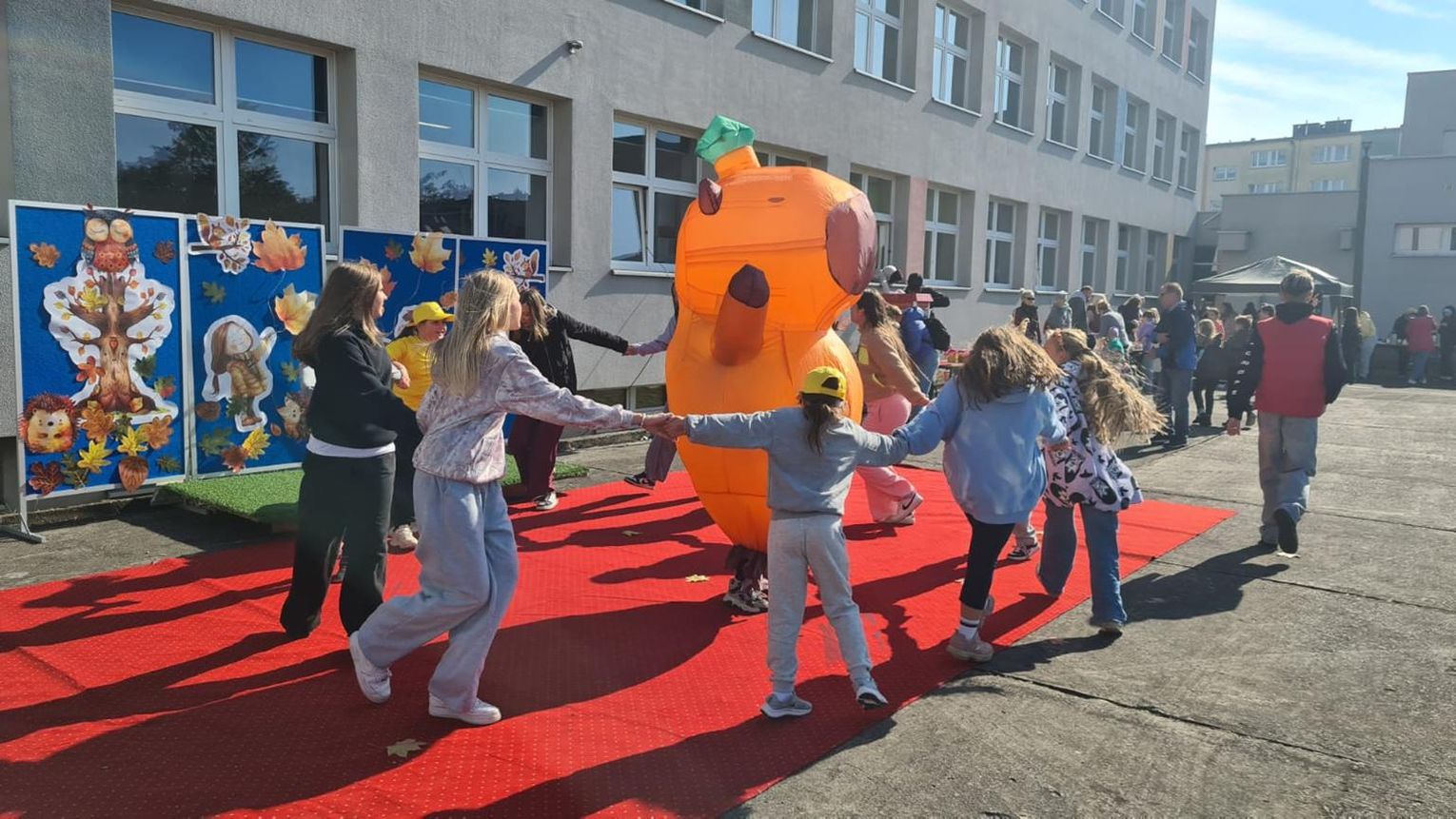 Na gości festynu w Publicznej Szkole Podstawowej nr 19 czekały stoiska pełne smaków i zapachów: gorąca grochówka i żurek, grillowane kiełbaski, popcorn, kawa i ciasta. Szczególnym zainteresowaniem cieszyło się stoisko „Pod bukowym liściem”, oferujące ręcznie robione drobiazgi i smakowite rarytasy, oraz pchli targ z unikatowymi skarbami – od zabawek po biżuterię. Ogromną radość dzieciom sprawiła maskotka kapibara, która stała się nieoficjalną gwiazdą festynu – przyciągała do siebie małych uczestników, a wspólne zdjęcia z nią wywoływały uśmiechy na twarzach wszystkich. Był też pokaz hobby horsing. Dzieci z każdej klasy prezentowały piosenki, taniec, inscenizacje, grę na instrumentach oraz zabawne wiersze. Ich entuzjazm, radość i autentyczność były wielokrotnie nagradzane brawami widowni.