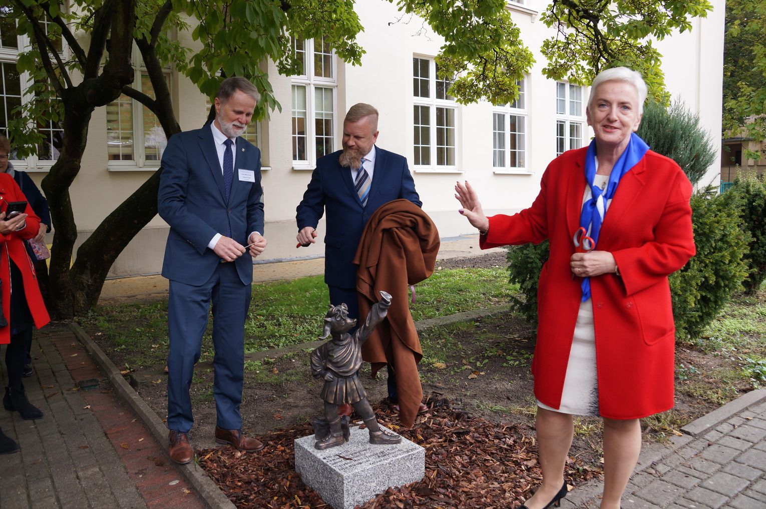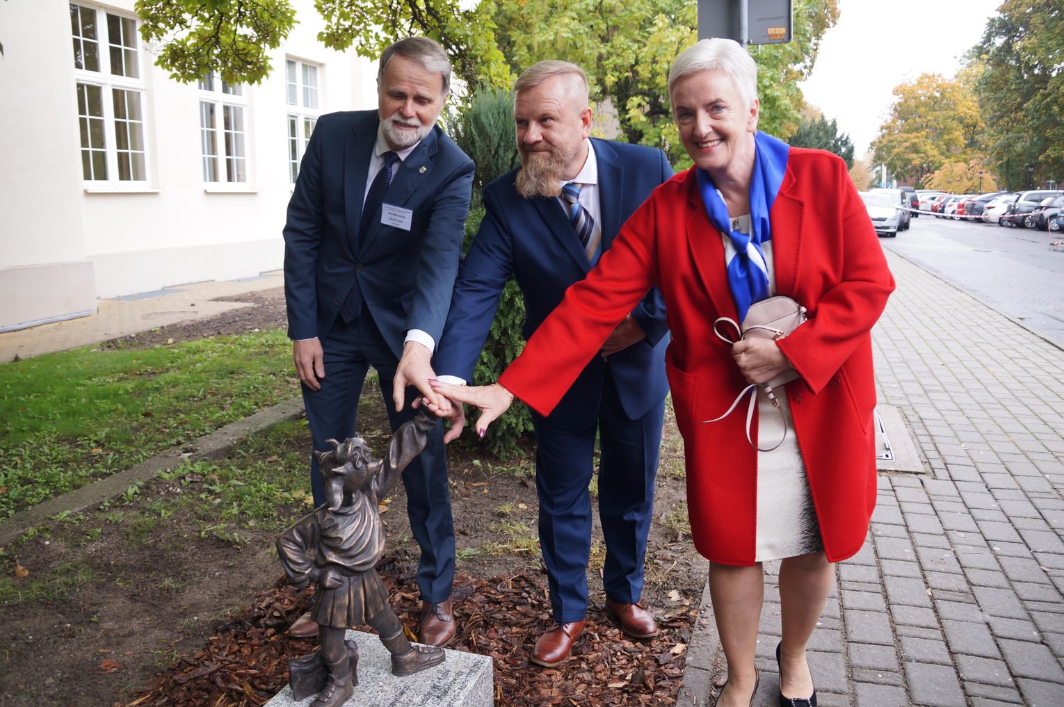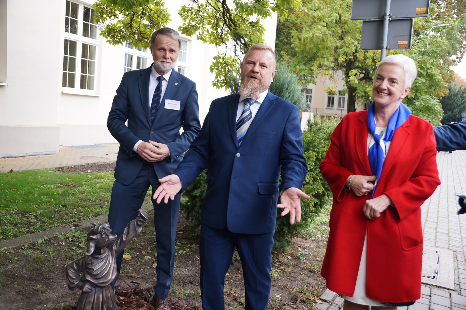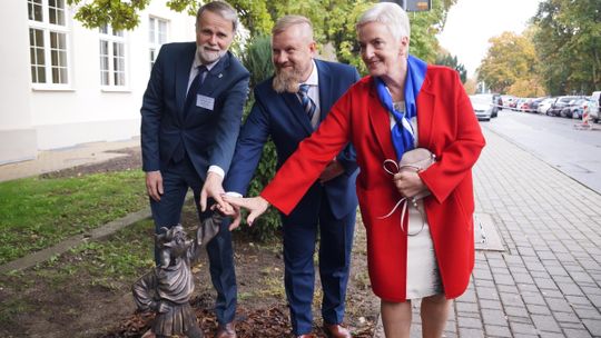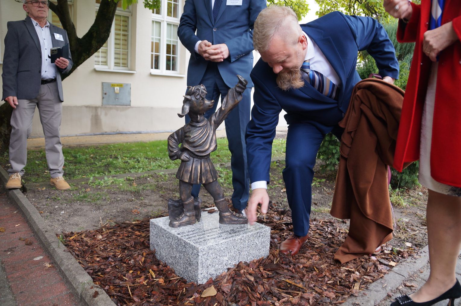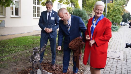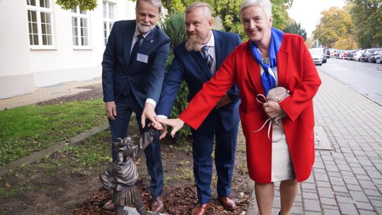 Miłą pamiątką wydarzenia był też nowy miejski koziołek. Rogata „uczennica”, która przysiadła przed budynkiem szkoły, już na zawsze witać będzie kolejne pokolenia absolwentów. Uroczyste odsłonięcie figurki przez prezydent Sabinę Nowosielską, starostę Artura Maruszaczaka i dyrektora I LO Wojciecha Czaplę, było jednym z punktów bogatego programu jubileuszu.