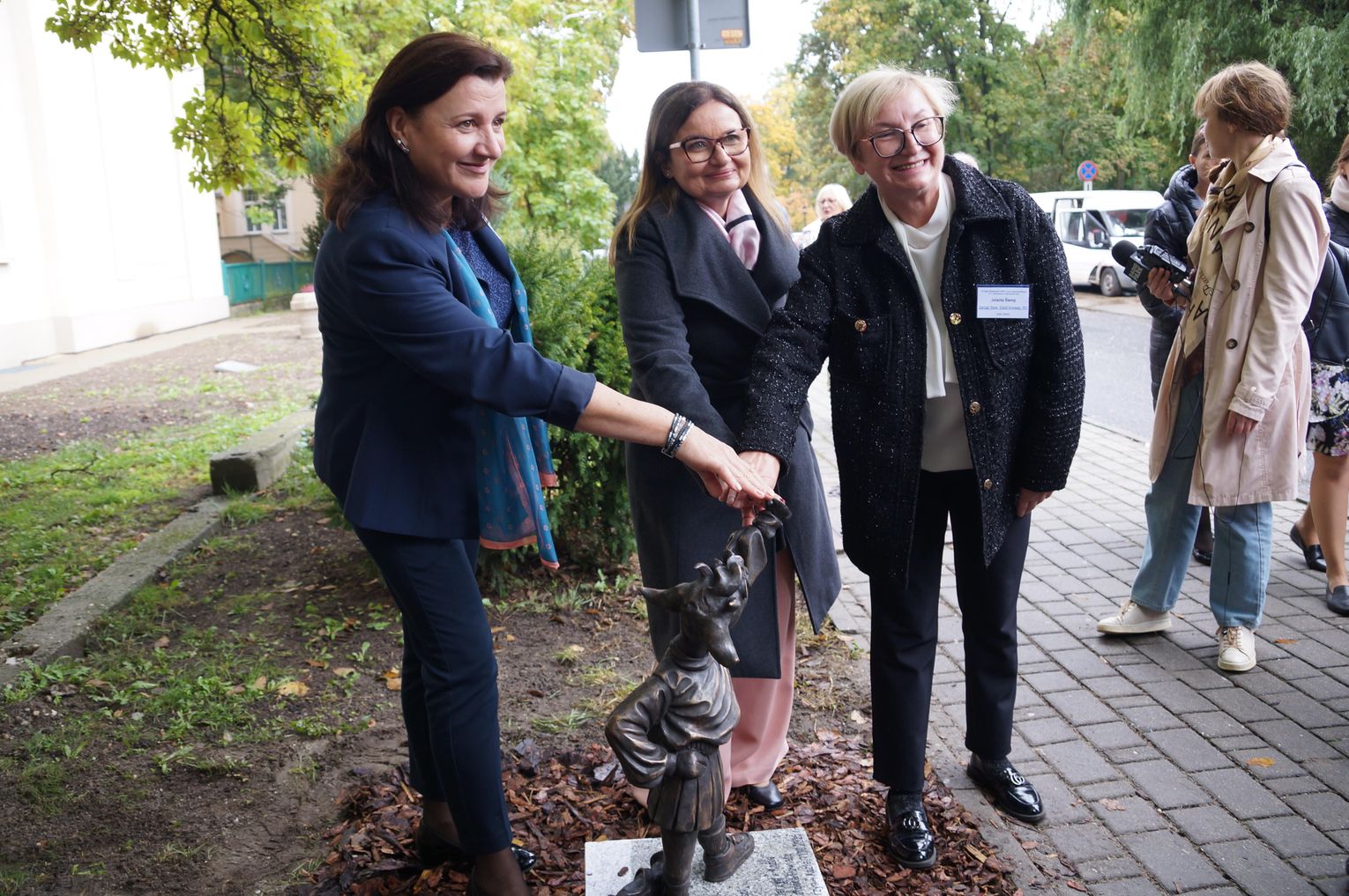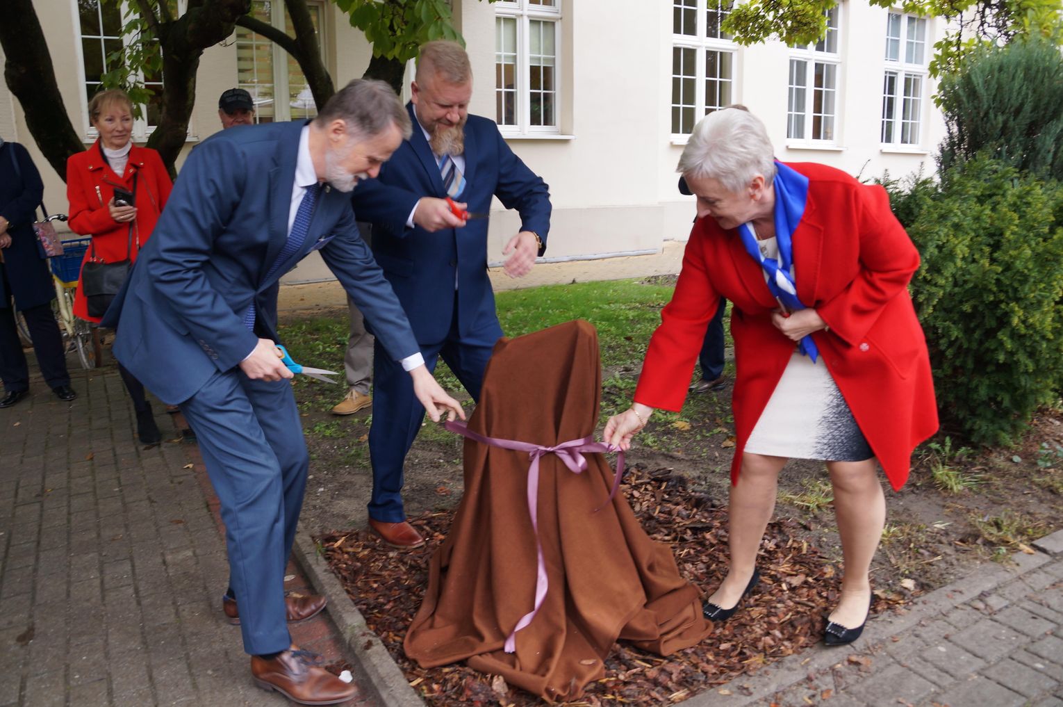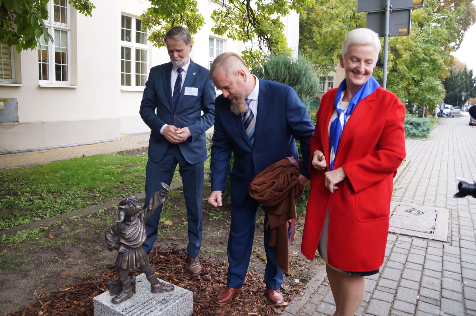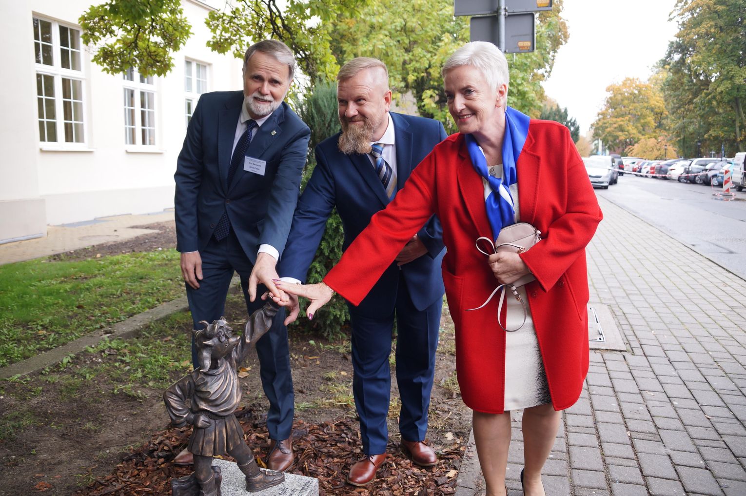 Miłą pamiątką wydarzenia był też nowy miejski koziołek. Rogata „uczennica”, która przysiadła przed budynkiem szkoły, już na zawsze witać będzie kolejne pokolenia absolwentów. Uroczyste odsłonięcie figurki przez prezydent Sabinę Nowosielską, starostę Artura Maruszaczaka i dyrektora I LO Wojciecha Czaplę, było jednym z punktów bogatego programu jubileuszu.