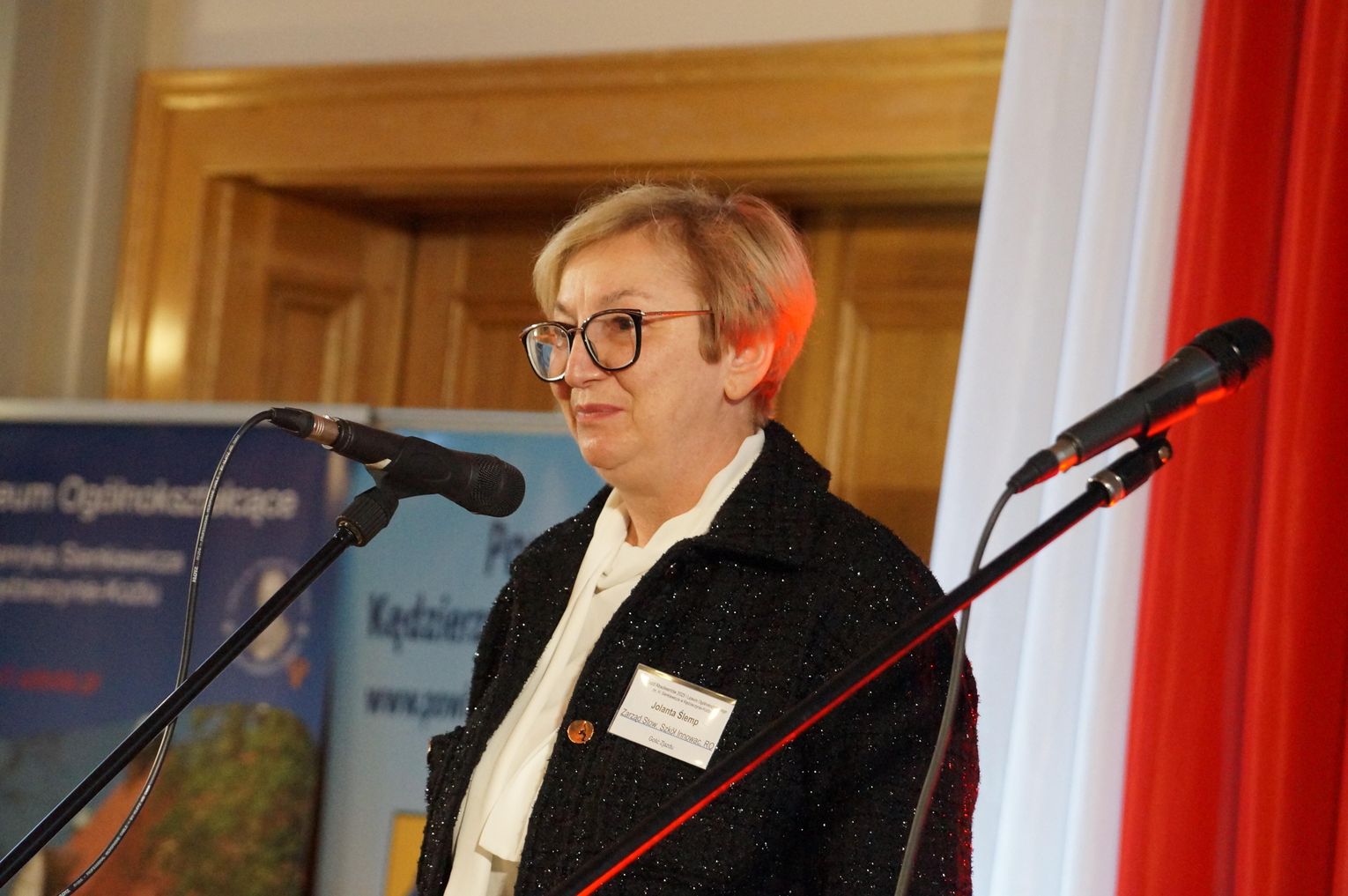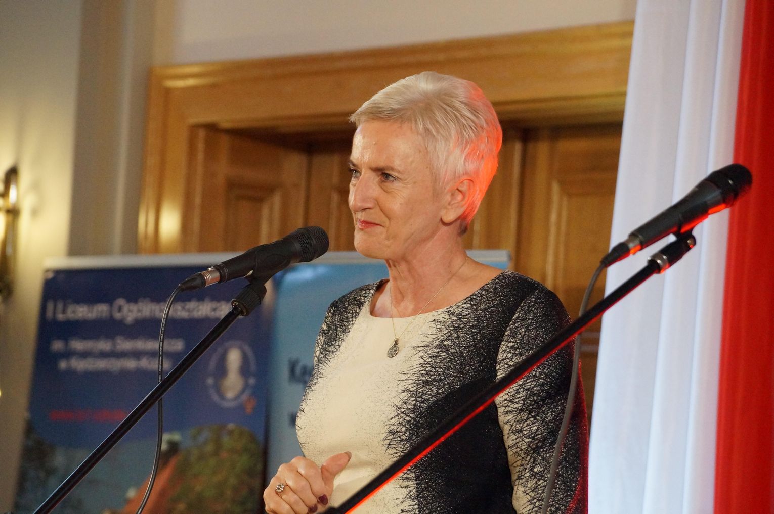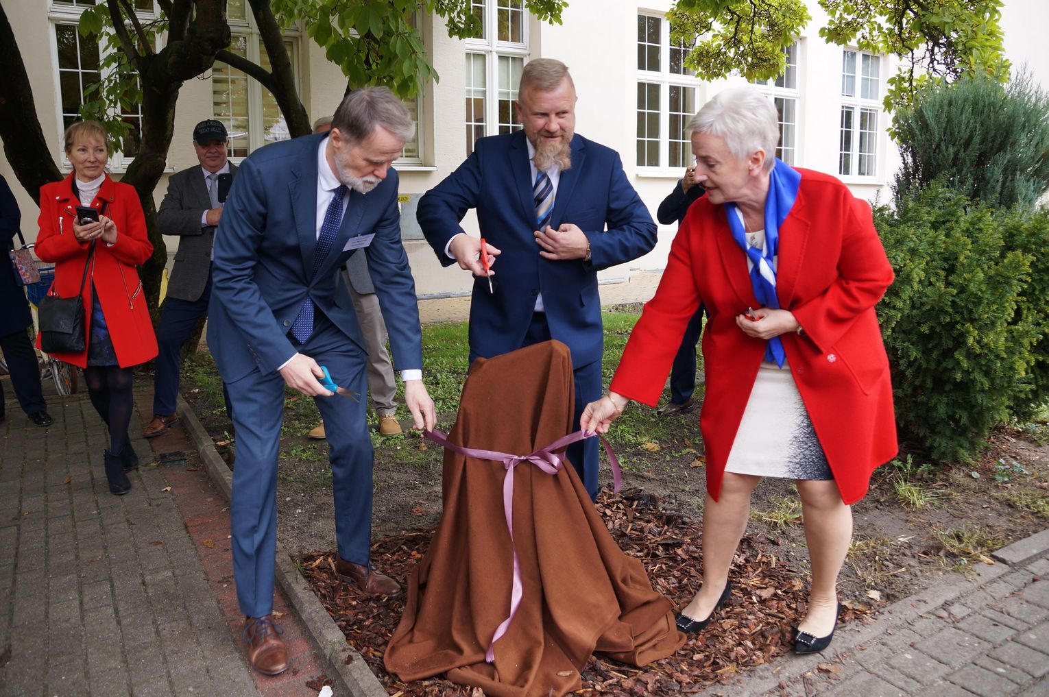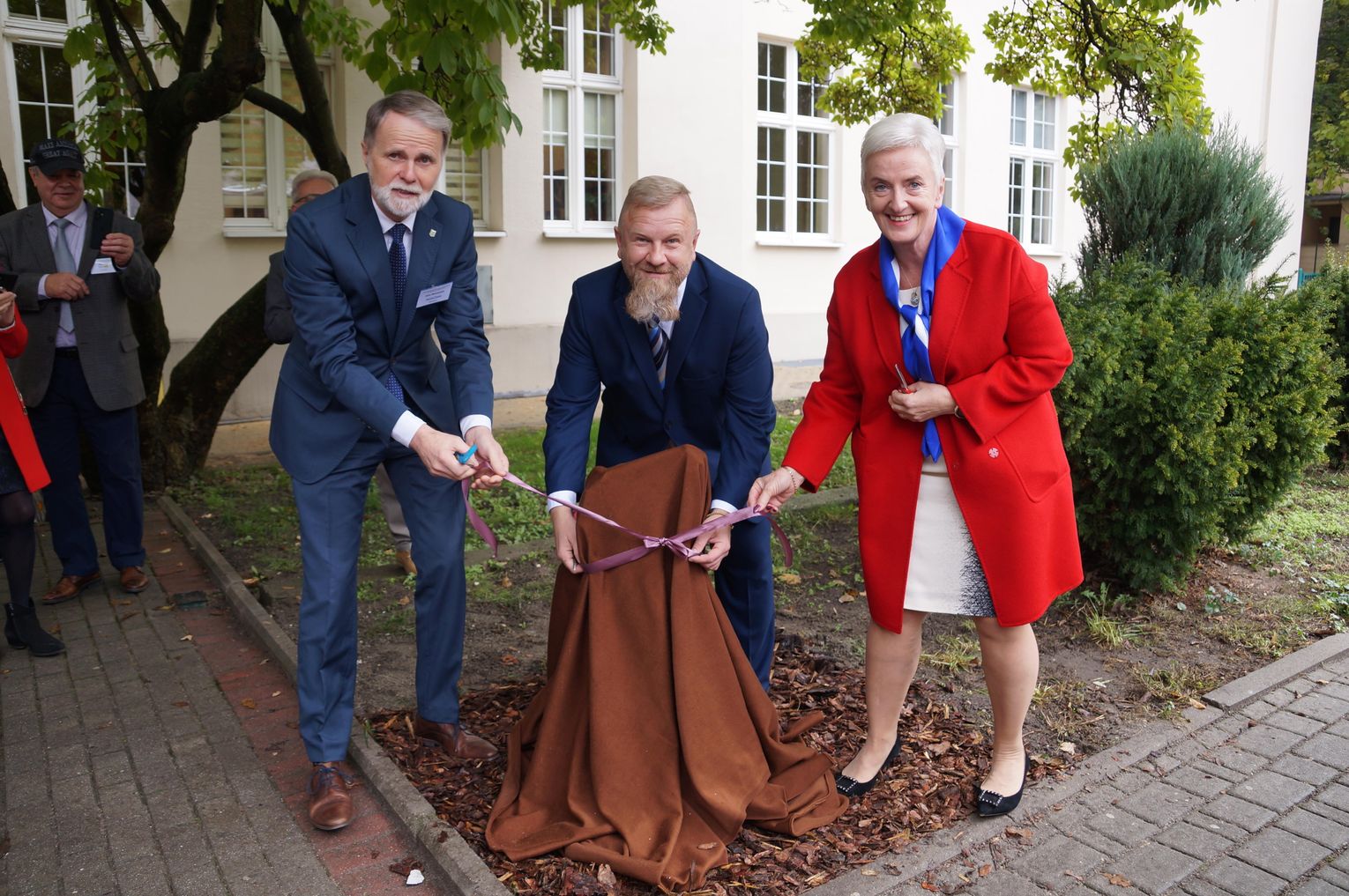 Miłą pamiątką wydarzenia był też nowy miejski koziołek. Rogata „uczennica”, która przysiadła przed budynkiem szkoły, już na zawsze witać będzie kolejne pokolenia absolwentów. Uroczyste odsłonięcie figurki przez prezydent Sabinę Nowosielską, starostę Artura Maruszaczaka i dyrektora I LO Wojciecha Czaplę, było jednym z punktów bogatego programu jubileuszu.