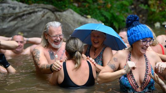 Atmosfera spotkania jak zawsze była przyjazna i - wbrew pozorom - gorąca. Nie ograniczyła się bowiem wyłącznie do kąpieli w lodowatej wodzie. Morsy znalazły też czas na skosztowanie przygotowanej przez górali ciepłej strawy i podziwianie uroków przepięknej okolicy, co uwiecznił na zdjęciach Michał Sowiżdrzał.