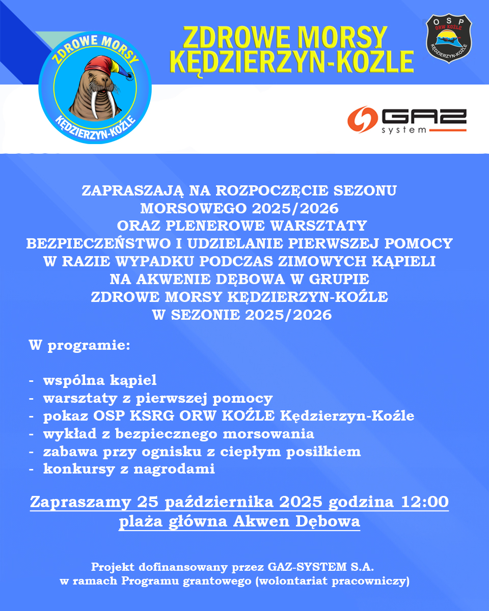 Tymczasem oficjalne rozpoczęcie sezonu naszych morsów na Dębowej zaplanowano na sobotę 25 października. Szczegóły na poniższym plakacie.