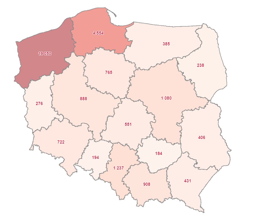 Rozkład terytorialny wygląda następująco: