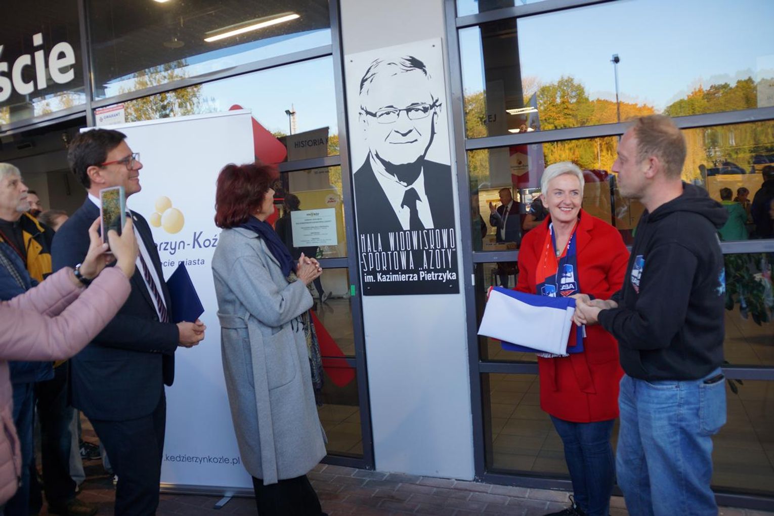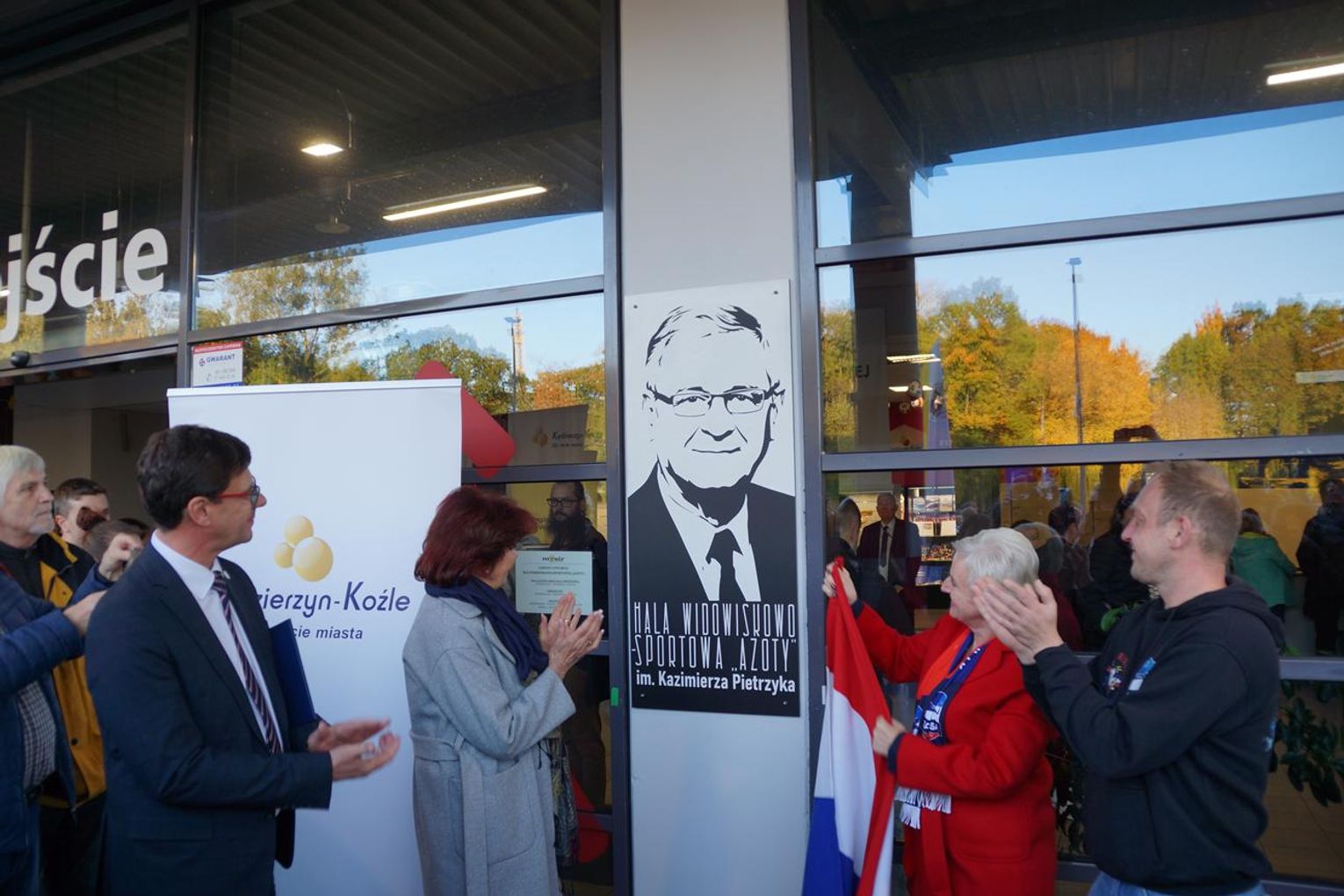 - Dziś obchodzimy urodziny miasta i w tym szczególnym dniu oddajemy hołd panu Kazimierzowi – prezesowi wszystkich prezesów. Jeszcze nigdy żadnego zarządzenia, jako prezydent miasta, nie podjęłam tak szybko. Gdy wpłynął wniosek stowarzyszenia o nadanie hali przy ul. Mostowej imienia Kazimierza Pietrzyka, w ciągu godziny było ono gotowe. Dziękuję kibicom za tę wspaniałą inicjatywę” - mówiła Sabina Nowosielska, prezydent Kędzierzyna-Koźla.
