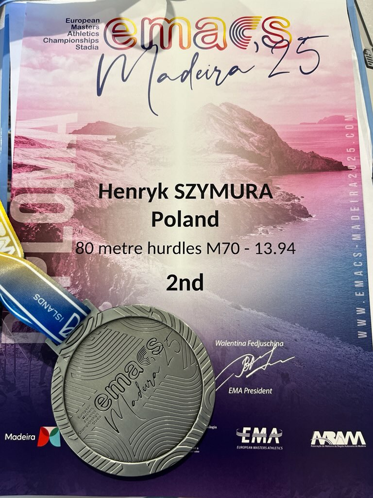 W poprzednich latach czterokrotnie przywoziłem z mistrzostw Europy złote medale i po cichu liczyłem na kolejne zwycięstwo w mojej konkurencji, czyli w biegu na 80 metrów przez płotki. Moją złotą serię przerwał jednak płotkarz ze Szwajcarii, z którym przegrałem w biegu finałowym o 0,38 sekundy. Pozostali zawodnicy z ponad jednosekundową stratą, a w sprintach to przepaść. Niestety, nie dane mi było cieszyć się srebrnym medalem, bo ze względu na bardzo późną porę rozgrywania biegu finałowego (21.30) ceremonie medalowe ostatnich tego dnia konkurencji przełożono na następny dzień. A następnego dnia rano miałem już lot powrotny do Polski. W moim imieniu srebrny medal odebrał nazajutrz kierownik polskiej ekipy, który obiecał, że po powrocie do kraju jak najszybciej mi go prześle – poinformował Henryk Szymura.