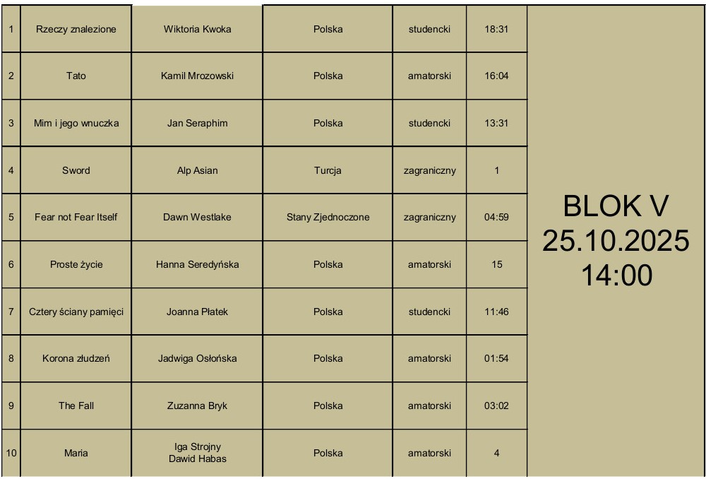 Filmy studenckie - dopracowane formalnie, eksperymentalne w formie i języku, często z elementami fabuły, animacji lub dokumentu.
