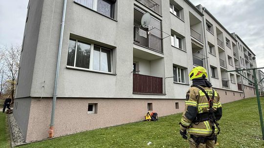 Kot utknął w uchylonym oknie na II piętrze. Z pomocą ruszyli strażacy