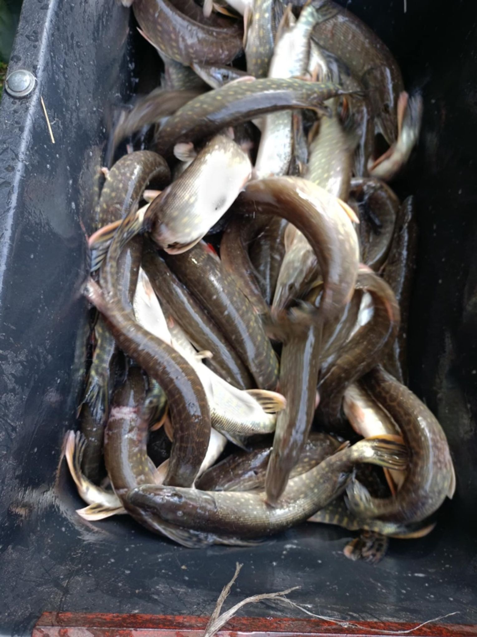 Do akwenu wpuszczono aż 300 kilogramów szczupaka o długości 30–35 cm - ryby zdrowe, żywotne i gotowe do zadomowienia się w nowym środowisku.