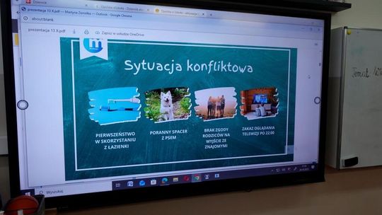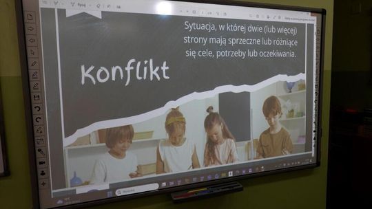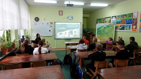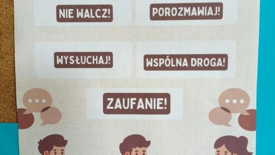 Na lekcjach wychowawczych uczniowie poznawali podstawy mediacji, jej zastosowanie w codziennych sytuacjach oraz rolę mediatora jako osoby wspierającej komunikację. W szkole powstała także gazetka informacyjna, która w przystępny sposób przybliżała tematykę mediacji wszystkim uczniom i odwiedzającym.